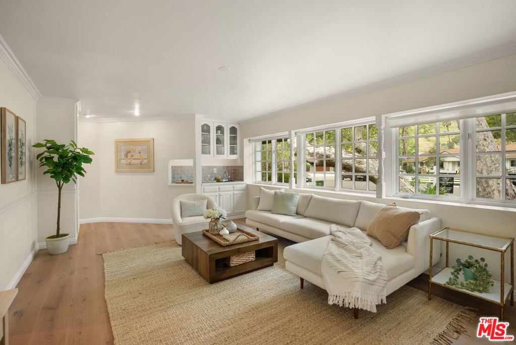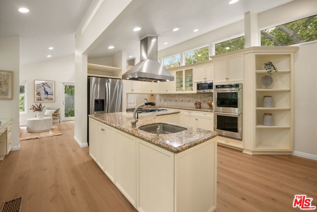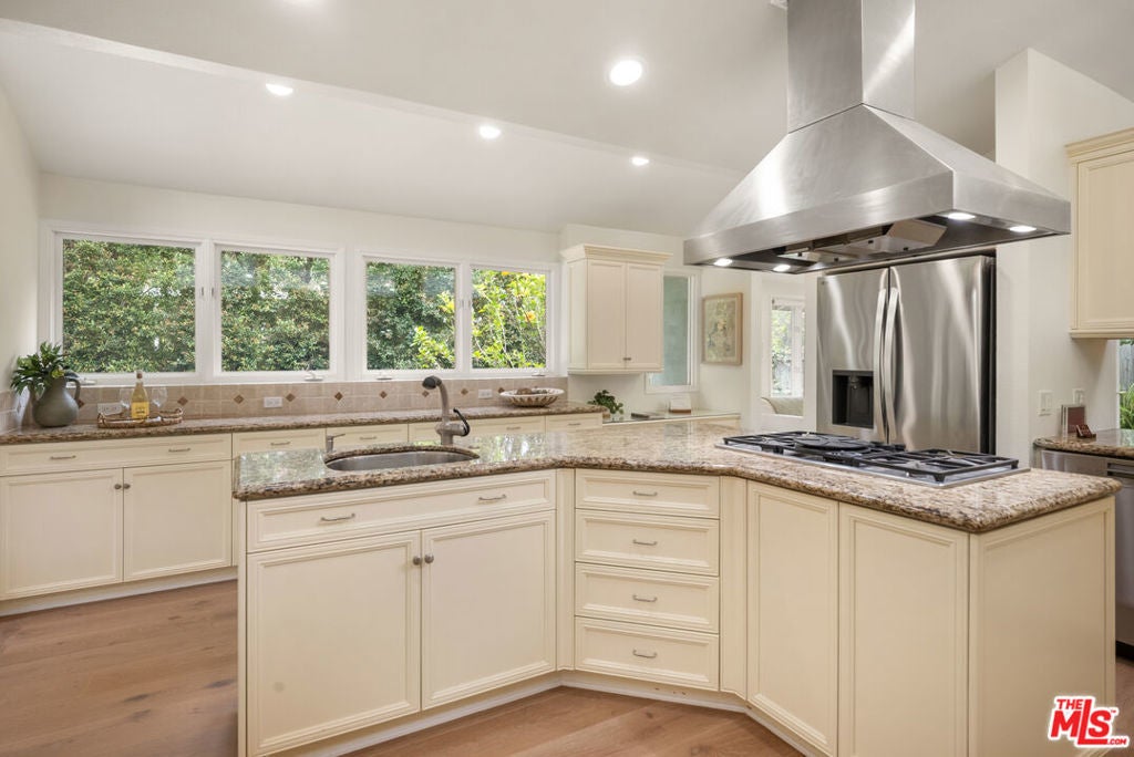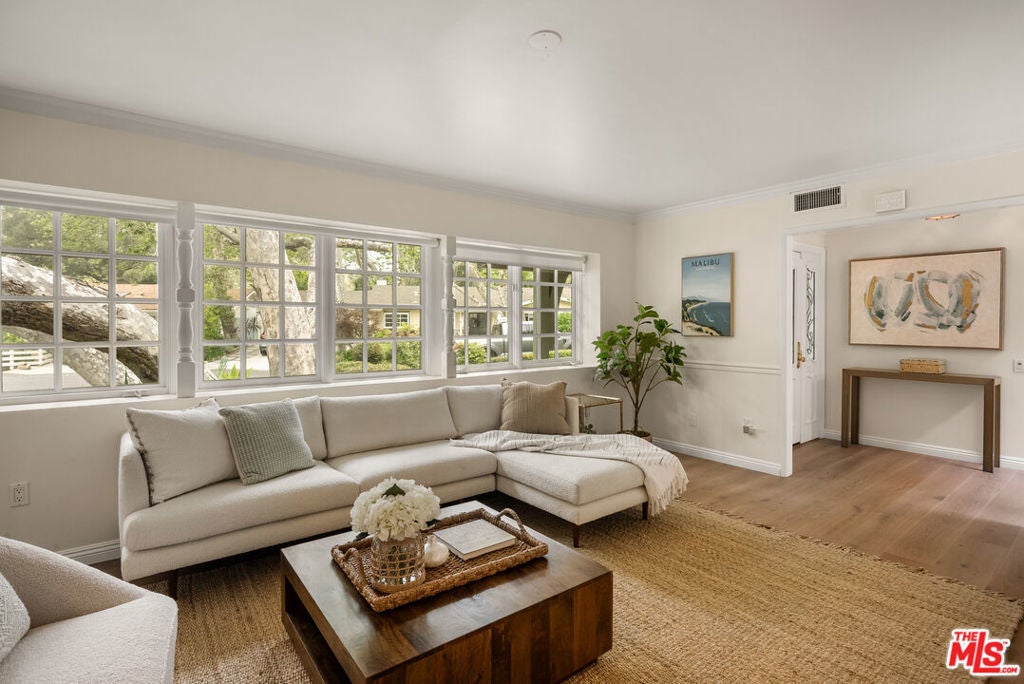 Located on a private cul-de-sac within the highly sought-after guard-gated community of Malibu West, this remodeled single-story ranch offers one of the largest floor plans in the neighborhood. Immaculate and thoughtfully updated, the home welcomes you through an entry into a living room featuring vaulted wood ceilings, a fireplace, and French doors that open to the serene backyard patio and gardens. A dining area with abundant natural light creates the perfect setting for gatherings both large and small. A spacious chef's kitchen outfitted with granite countertops, a large center island with cooktop, and brand-new high-end appliances including an LG refrigerator/freezer, Kitchen-Aid double ovens, and a Miele dishwasher is adjacent to the cozy family room. Watch TV, enjoy a delicious breakfast, lunch or dinner while sitting by the fireplace. The expansive primary suite is a private retreat, showcasing vaulted ceilings, a gas fireplace, windows on all sides, French doors to the garden, a walk-in closet, and a beautifully appointed bathroom with dual sinks, soaking tub and dual shower. Three additional bedrooms provide ample flexibility, including a generous en-suite with garden views, which offers a bathroom with stone floors, a marble vanity and shower over the tub. Step outside to a sun-filled, fully fenced landscaped backyard featuring brick pathways and lush, flower-filled garden, perfect for dining, relaxing or entertaining. Residents of Malibu West enjoy exclusive access to the private Malibu West Swim Club on Broad Beach Road, offering a clubhouse, showers, parking, and direct entry to one of Malibu's most beautiful sandy beaches. Additional community amenities include tennis and pickleball courts. Ideally located just minutes from Zuma Beach, the Trancas Country Market, local parks, and the newly rebuilt Malibu middle and high schools. This home offers the perfect blend of coastal living, comfort, and convenience. Easy to show. Contact the listing agent for a private tour.