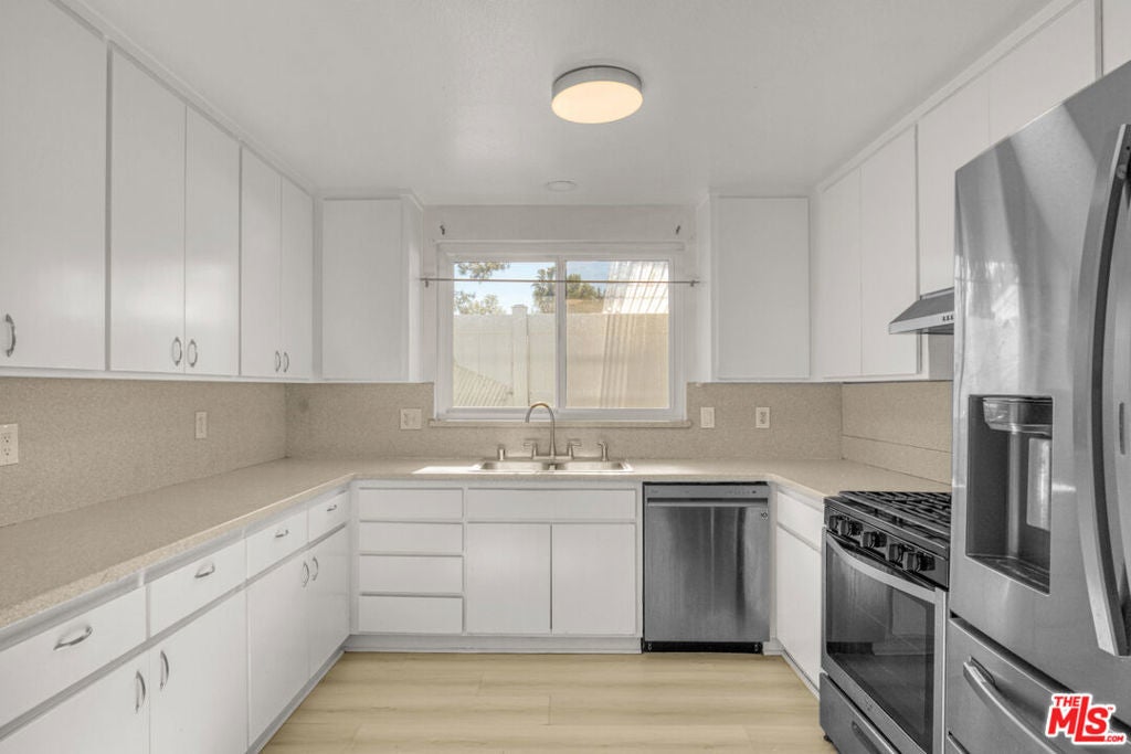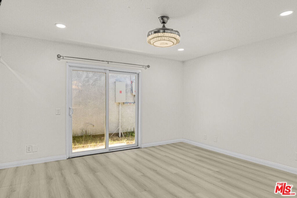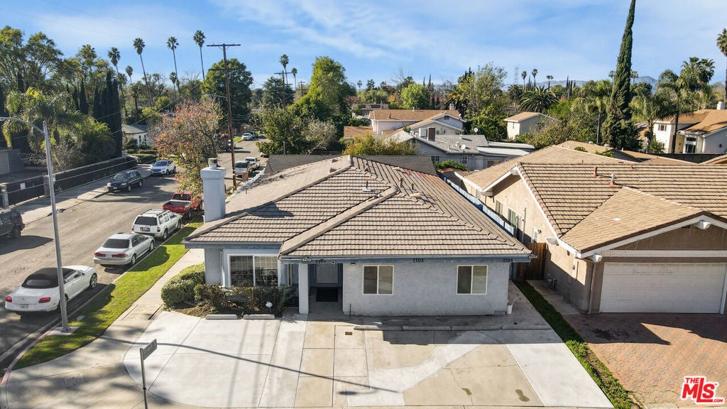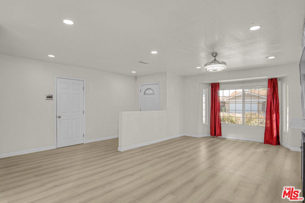 Welcome to this beautifully updated and move-in ready 4-bedroom, 2.5-bath smart home located on a quiet, tree-lined residential street in the heart of Reseda. This light-filled residence features a modern open-concept layout with tasteful upgrades throughout, blending comfort, functionality, and contemporary style.The expansive living and dining areas showcase wide-plank flooring, recessed LED lighting, and a striking modern fireplace with a mounted TVperfect for relaxing or entertaining. Both the living room and dining area are equipped with elegant chandelier-style ceiling fans with built-in speakers, creating a stylish and comfortable atmosphere. Large windows allow natural light to fill the space, enhancing the bright and welcoming feel.The updated kitchen is designed with both style and practicality in mind, featuring crisp white cabinetry, generous counter space, and stainless steel appliances including a refrigerator, stove, dishwasher, and microwave hood. The kitchen opens seamlessly to the main living area, making it ideal for gatherings and everyday living.The home offers four spacious bedrooms, each featuring chandelier-style ceiling fans with built-in speakers, ample closet space, and neutral finishes. A bonus room provides flexible use as a children's room, home office, study, or additional living space. The 2.5 remodeled bathrooms include modern vanities, large mirrors, and updated fixtures for a clean, contemporary feel.Additional highlights include smooth ceilings, mirrored closet doors, sliding glass doors leading to private outdoor space, durable easy-care flooring throughout, in-unit washer and dryer, and central air conditioning controlled by a Nest thermostat, making this a true smart home.Conveniently located near shopping, dining, parks, schools, and major freeways, this home offers easy access to everything the San Fernando Valley has to offer while maintaining a peaceful residential setting.
