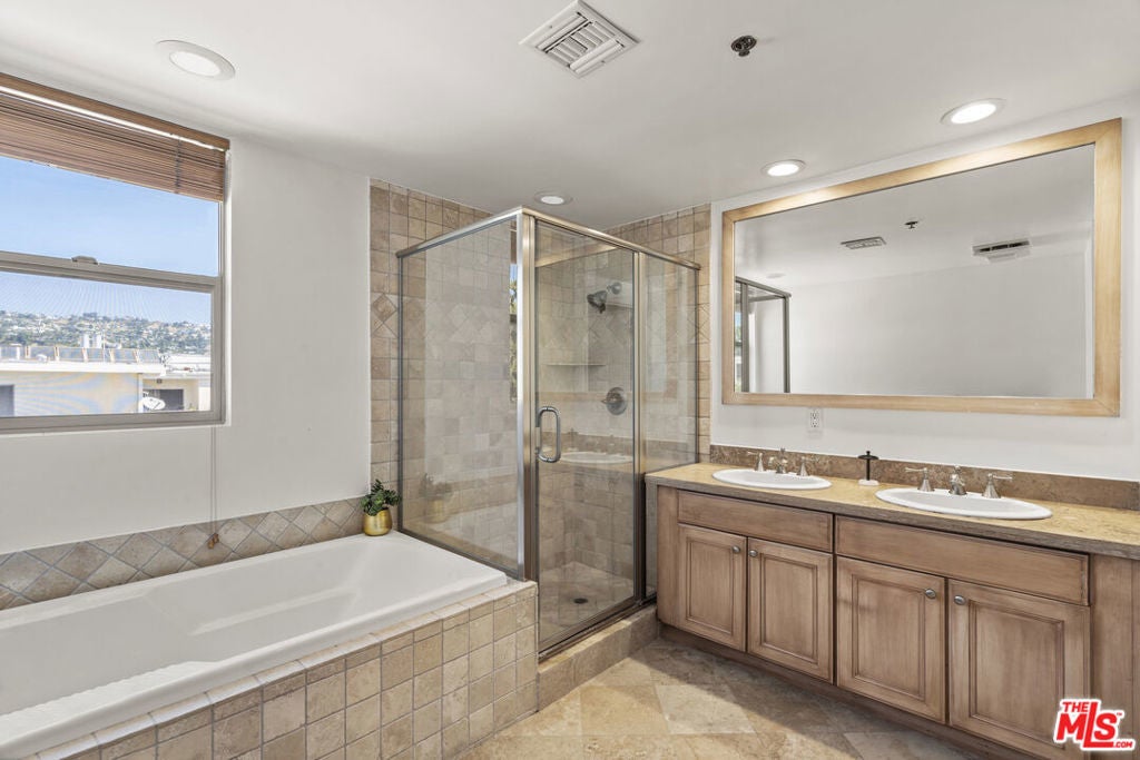 Available Jan 1, 2026 - Prime Location Corner Penthouse City View Unit in one of the best Condo Buildings around, 1 block from The Ivy and Chanel and blocks to Cecconi's, Craigs, Cedar Sinai and so much more! Dramatic Entry Hall to your incredible new home with open entertaining areas to expansive patio with views of the Sunset Strip from Trousdale, Beverly Hills to the Hollywood sign. Split bedrooms allow privacy and both bedrooms have en suite bathrooms and walk in closets. Just off the well equipped kitchen area with open bar is a cozy den area with fireplace. Large open living and dining area are perfectly situated next to the huge patio. Lovely powder room for your guests to use and stunning flooring throughout make this the perfect condo for entertaining or just enjoying the luxury for yourself! A laundry closet is equipped with large capacity washer and dryer. Gated parking with elevator access for 2 cars add even more to this incredible home. A must see if you are looking to make a move to a Perfect Penthouse unit! 360 degree City Views Roof Top/Sun Deck is another part of this amazing Tuscan Villa style complex.
