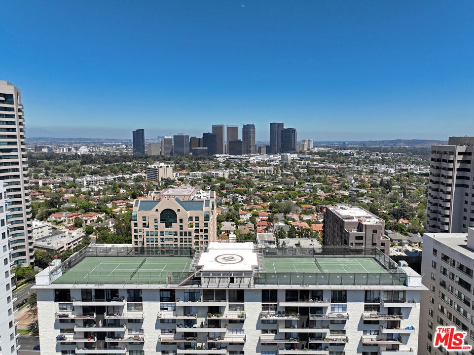 This amazing end of year DEAL at the Wilshire Marquis Awaits You! This stylish and spacious CORNER 2-bedroom, 2-bath residence offers a luxurious lifestyle on the prestigious Wilshire Corridor. Upon entering through rich, dark-wood double entry doors, you are greeted by gleaming bamboo flooring throughout, a grand open-concept living room showcasing magnificent panoramic views and picturesque north-facing vistas of Bel Air and Holmby Hills, all enjoyed from the kitchen, living room, private outdoor balcony, and bedrooms. The thoughtful open concept layout with includes a convenient breakfast bar, and wet bar perfect for entertaining. The expansive primary suite includes a vanity area, walk-in closet, and ensuite bath, creating a private sanctuary. The second spacious bedroom features built in book shelving. Additional highlights include a spacious foyer, and in-unit washer/dryer. The Wilshire Marquis features 24-hour door/concierge service, private parking for residents and guests, three tennis courts, two of them on the roof with spectacular roof deck tennis court views, a heated pool and spa, fitness center, sauna, community room, and EV charging stations. Located in the heart of Westwood, this 9th floor corner units with amazing views is perfectly positioned in close proximity to Westwood Village, UCLA, the 405 freeway, and is Bel Air and Beverly Hills adjacent. All interior photos digitally staged.