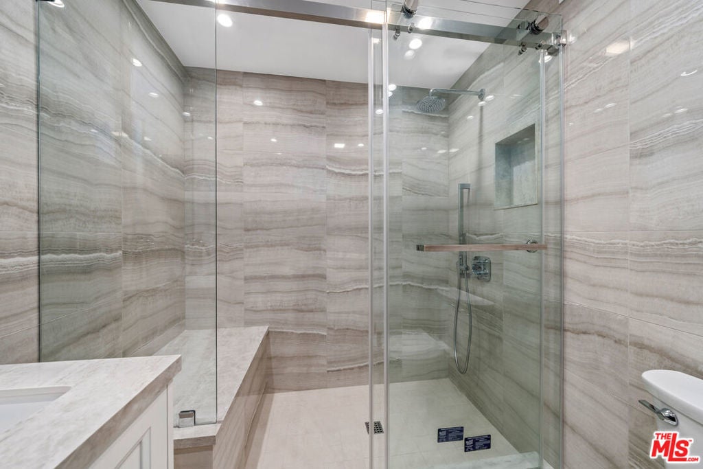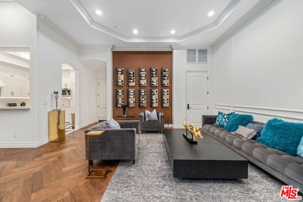 Meticulously remodeled this two-story residence offers a rare blend of luxury and privacy with the distinct feel of a single-family home. Every detail has been updated, including custom kitchen cabinetry, an entertainer's kitchen featuring Wolf, Miele, and Sub-Zero appliances, flooring, and beautifully redesigned bathrooms. Soaring 14-foot ceilings, dramatic art walls, and an exceptionally quiet interior create an elevated living experience rarely found in the heart of the city. The first floor is designed for both everyday living and entertaining, featuring a spacious living room with a fireplace, a separate family room, and a formal dining room ideal for hosting. A versatile den on the main level opens to a private balcony and offers flexibility to potentially be converted into a third bedroom. Upstairs, both bedrooms are en-suite with walk-in closets. The primary suite serves as a private retreat, featuring a seating alcove, a designer bathroom with dual vanities, a spacious walk-in closet, and a private, expansive patio. The residence is designed as a smart home, including remote-controlled roller shades for modern comfort and convenience. Additional features include a main-level powder room, a full laundry room, and three side-by-side parking spaces. Experience the height of Beverly Hills living, where legendary dining and elite shopping are a daily convenience. Offered fully furnished!