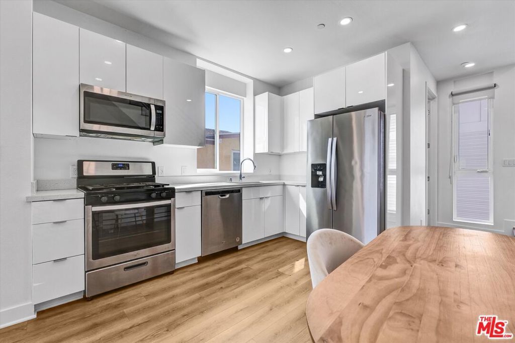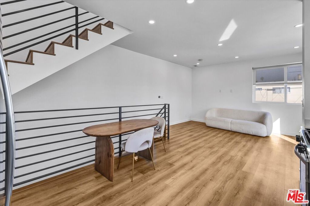 This modern Mid-City townhouse offers a bright, contemporary living experience with approximately stated features that blend style and convenience. Beautiful laminated hardwood flooring extends throughout the open layout, enhanced by abundant natural light from expansive floor-to-ceiling windows and elevated ceilings that create an airy, spacious feel. The updated kitchen is designed with clean, modern finishes including stainless steel appliances, quartz countertops, and recessed lighting for a sleek, polished presentation. The upper-level living space provides impressive views and a sense of openness, while the modern bathrooms add a refined, cohesive aesthetic. Additional features include in-unit laundry, two included parking spaces, pets permitted, and all utilities paid by the tenant. Ideally located in vibrant Mid-City with convenient access to a wide array of dining, shopping, parks, and neighborhood amenities, this residence offers a compelling opportunity in a central Los Angeles location. Available immediately. All information is approximate and should be independently verified.