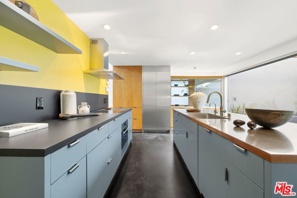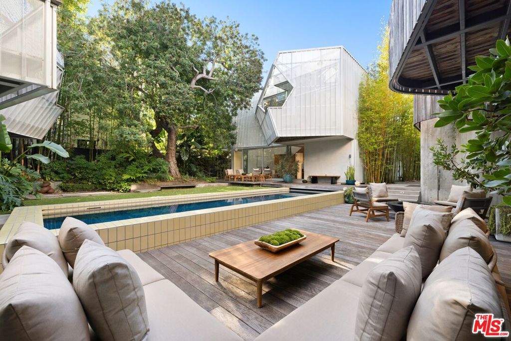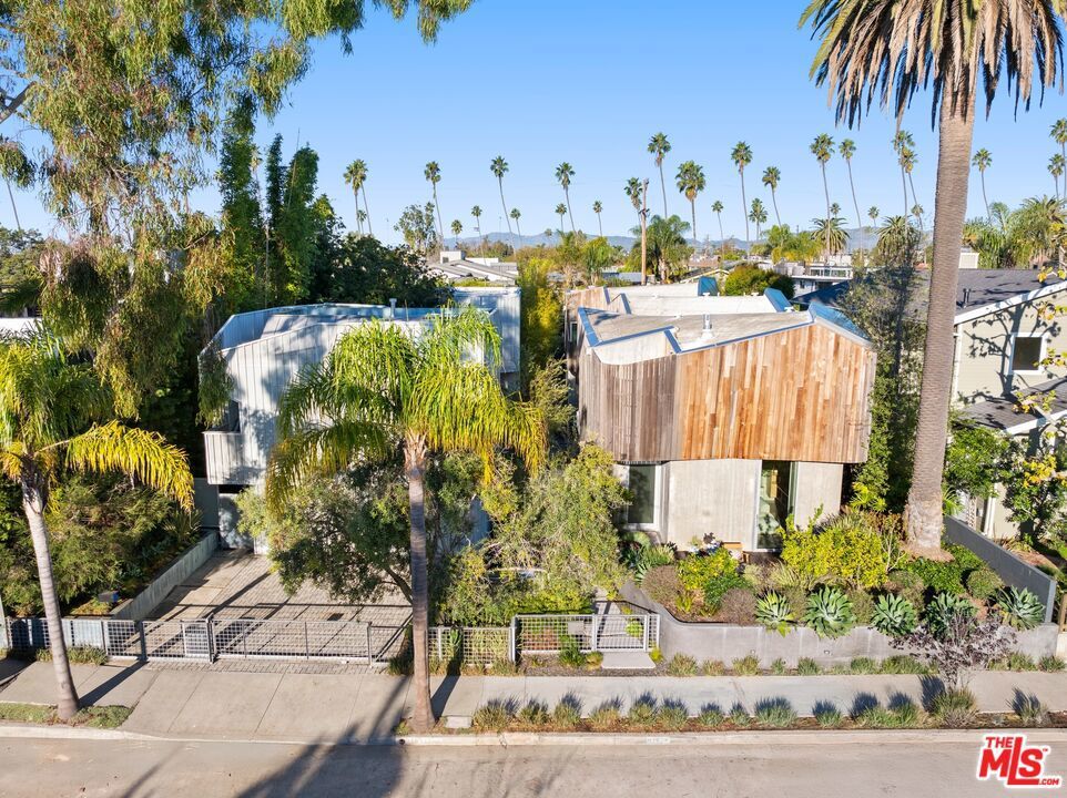 PALMS HOUSE I & II. Step inside this multiple award-winning architectural compound, a dramatic conception of complementary materials that combine to create modern serenity with multiple living structures bathed in sunlight, and a glassy pool ideally situated between. Extensively featured in the May '22 issue of Architectural Digest, no detail has been spared in this stunning showpiece. A triumph of creative design by renowned architect Kevin Daly, the property was visualized as a multi-generational estate for a contemporary lifestyle. Featuring three separate residences and offering thoughtfully conceived privacy from each one, there are endless possibilities for a seamless work/life balance amid the teeming natural surroundings and just a short walk to the famed shops, and restaurants on Abbot Kinney Boulevard. The main house (Palms II, completed in 2021) spotlights warm wood and screen elements set atop a concrete podium with a broad expanse of glass that provides open sight lines across the property. Complete with 3400 square feet of living space with 4 bedrooms and 3 1/2 baths, details include soaring ceilings, fireplace, polished concrete floors with radiant heating, primary bedroom with private deck and primary bath with steam shower. The second house (Palms I, completed in 2010) places emphasis on framing discrete vistas of trees and sky with apertures arranged from folding perforated metal screens wrapped around the base structure. Complete with 2000 square feet of living space featuring 3 bedrooms and 3 baths, details include soaring ceilings, open dining room, radiant floor heating, kitchen with outdoor dining patio, and a living plant wall designed by Big Red Sun. The ideally positioned guesthouse finishes the third chapter of the trilogy. Artfully executed as a 400 square foot studio, the space provides additional living/sleeping quarters with bath, dual sided fireplace, in-floor heating, and private deck and entrance.The outdoor courtyard is a gathering venue between the spaces, featuring 3 outdoor fireplaces, sport court with NBA regulation hoop, outdoor shower, garden and the pool with retractable cover. Parking for 8 cars (4 for each home and electric chargers in both) and state-of-the-art security systems with cameras complete the practical details of this truly striking and unprecedented property.