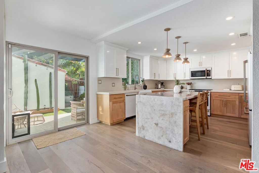 Located on a quiet cul-de-sac in Venice, this beautifully remodeled five-bedroom home offers privacy, style, and immediate move-in convenience. Offered fully furnished, the residence features beautiful hardwood floors throughout and a thoughtfully designed floor plan with one bedroom on the main level and three bedrooms plus an office or optional fifth bedroom upstairs. The chef's kitchen is a standout, showcasing Cristallo Quartzite countertops, high-end appliances and seamless flow into the living and dining areas. A large, gated front yard with low-maintenance turf provides exceptional outdoor space, while the rear of the property offers a covered patio, fire pit, and private sauna - ideal for entertaining and relaxation. Additional highlights include a detached two-car garage accessed via a gated alley and solar panels for energy efficiency. An exceptional Venice home located a short distance to the beach and renowned restaurants, shops, and vibrant coastal lifestyle.