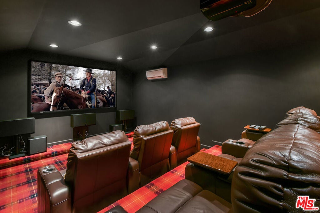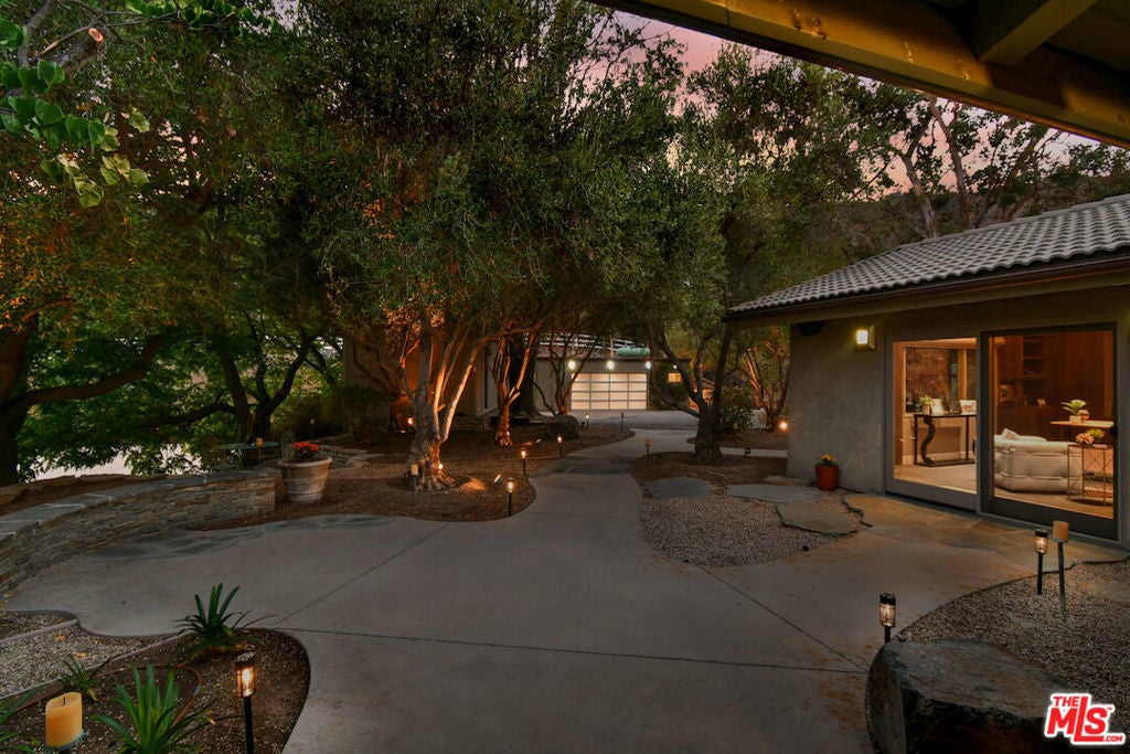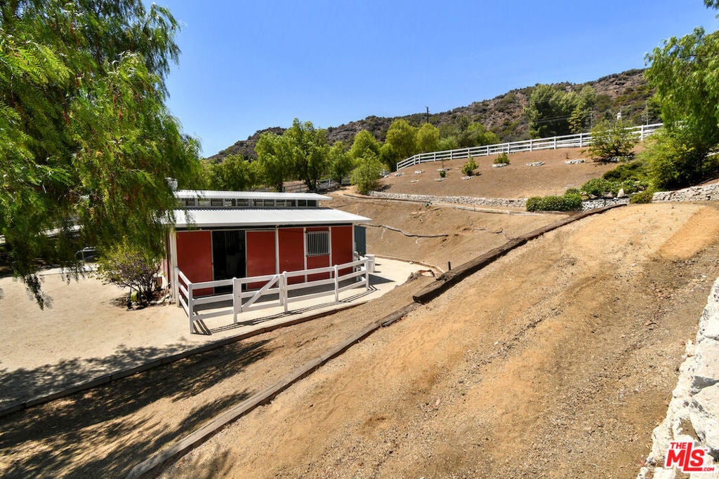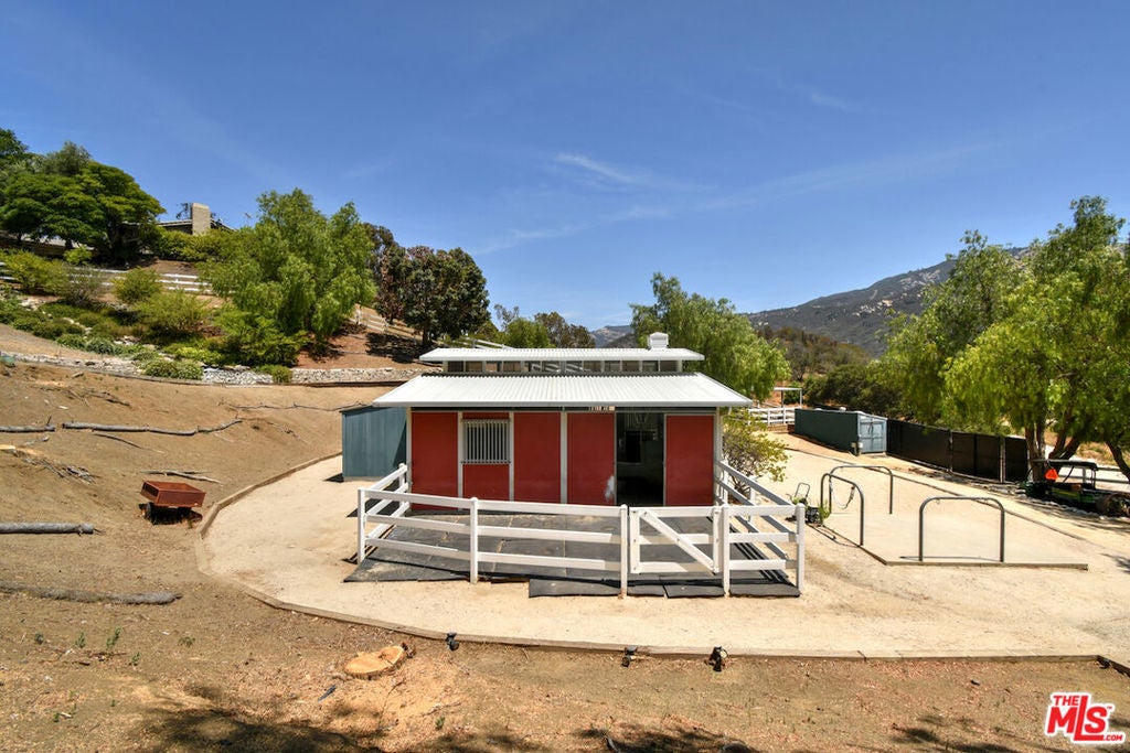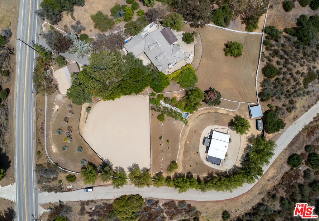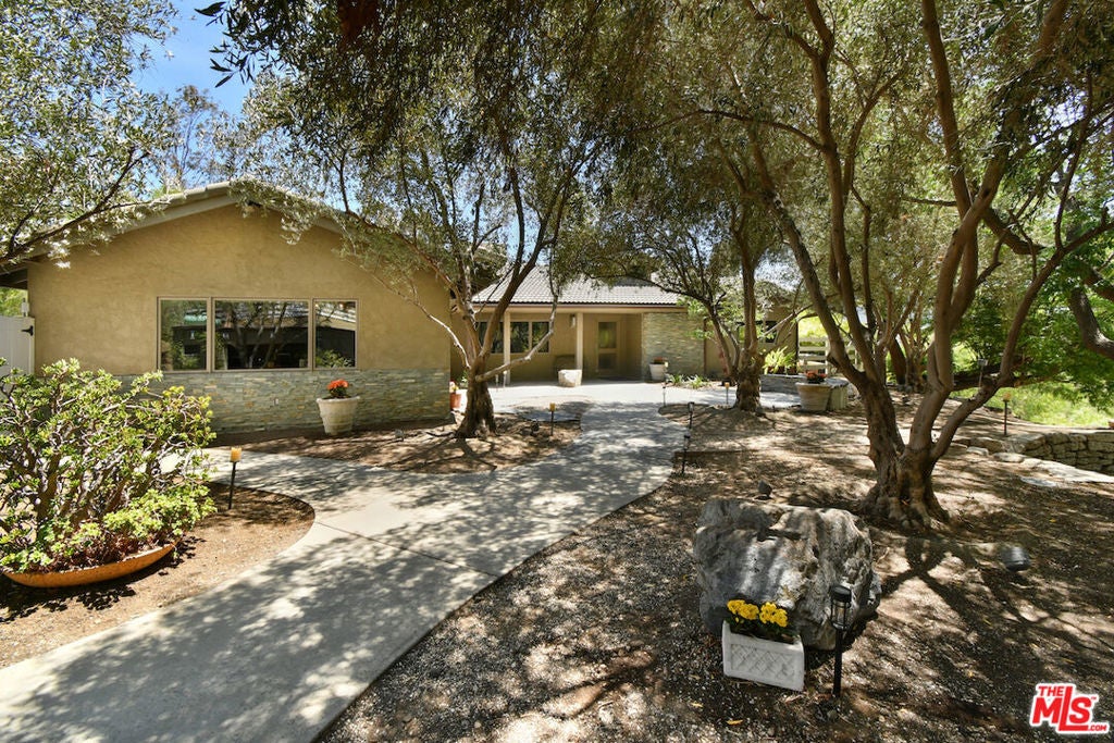 Welcome to 25700 Mulholland Highway, an extraordinary equestrian estate on nearly two acres along the iconic Mulholland Corridor in Calabasas, California. Set behind gates and surrounded by mature olive trees and sweeping views of the Santa Monica Mountains, this rare compound offers a seamless blend of luxury living and rural charm just minutes from both Calabasas and Malibu. The beautifully remodeled single-story home spans approx. 2,500 square feet and features Turkish limestone floors, soaring ceilings, and walls of glass that bring in natural light and frame panoramic views. Highlights include a formal living/media room with custom built-ins, a dramatic great room with fireplace, and a designer kitchen equipped with Sub-Zero, Wolf, and Miele appliances, granite counters, and book-matched custom cabinetry. The flexible floor plan includes two sleeping rooms on one side including a private primary retreat with walk-in closet, custom built-ins, spa bath and mountain views. Off the kitchen, an impressive executive office suite (3rd bedroom) has high ceilings, wet bar, spa bath, and its own entrance to the front courtyard. Outside, the property boasts a detached two-car garage with workshop and storage, a private state of the art movie trailer/theater, ample parking, and incredible equestrian amenities. A professionally graded riding arena, two-stall barn, and large tack room/lounge sit below the main house, connected by a private trail and peaceful waterfall feature. The property also offers a pad for an airstream, and direct access to scenic trails in the Santa Monica Mountainsperfect for morning rides. A true gentleman's ranch and one-of-a-kind offering for equestrian lovers, nature seekers, or anyone craving privacy, views, and elegant indoor-outdoor living.