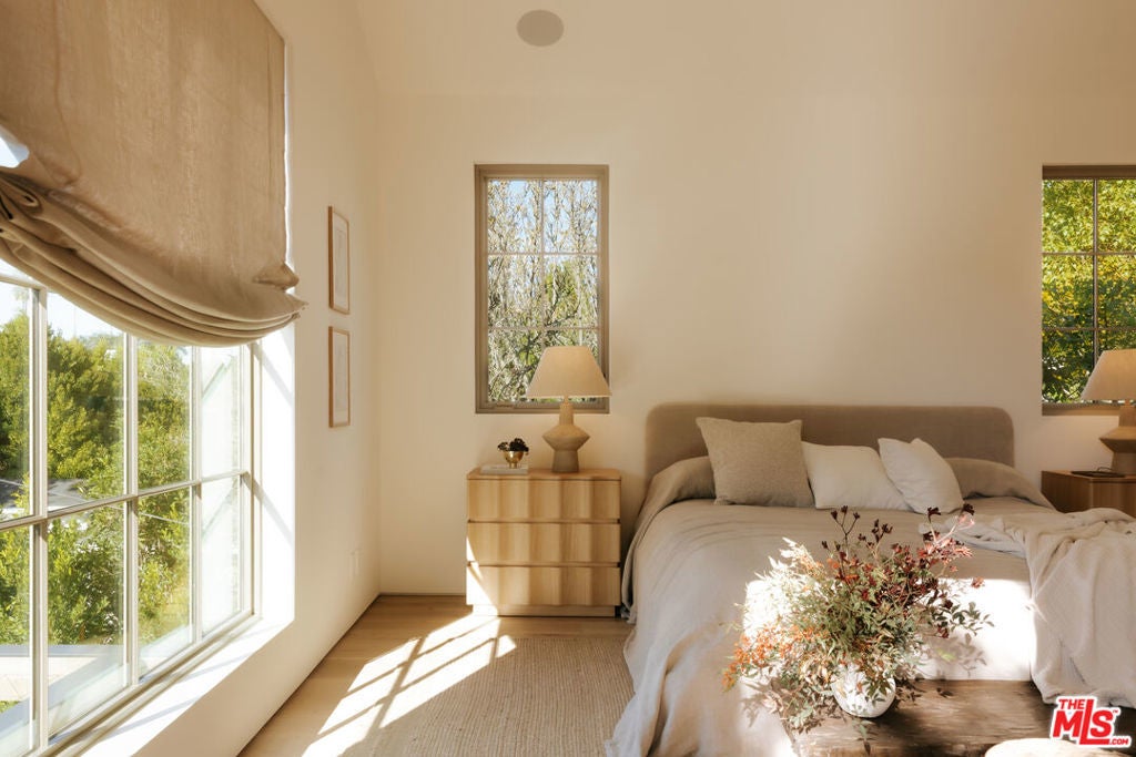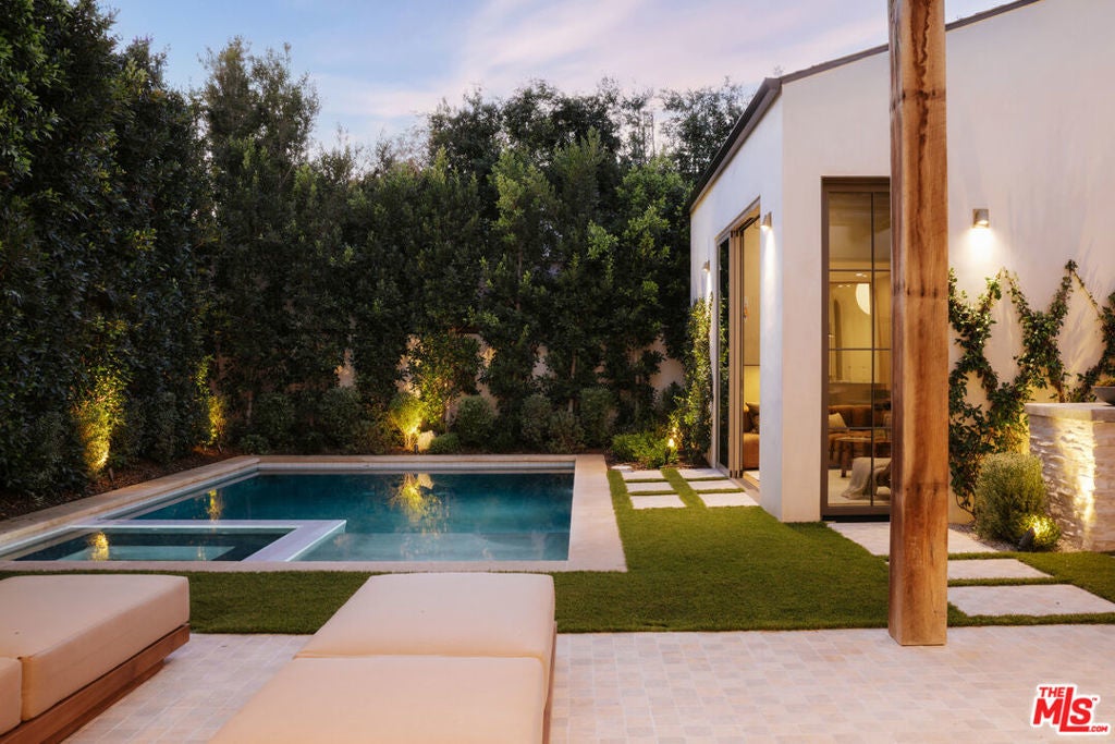 A brand-new modern residence - minimalistic yet richly layered and curated by interior designer Caroline Schoppe with Concept by C. This 5-bed, 5.5-bath home opens with a stately gated entry lined with mature olive trees, guiding you into a serene formal living and dining experience. Oversized sliding doors frame the kitchen and great room, creating a seamless indoor-outdoor connection to the pool, BBQ, and landscaped grounds. The kitchen is designed for true entertainers, complete with a butler's pantry, walk-in pantry, and full Miele suite. A spacious detached ADU offers versatility - currently imagined as an entertainment lounge with ping-pong, bar, and seating, yet equally functional as a creative studio or private guest suite. Throughout, the home's palette exemplifies understated luxury: brass detailing, natural stone tiling, chocolate-fusion countertops, v-groove rift-oak cabinetry and doors, cobblestone exterior moments, and an English-inspired pergola wrapped in jasmine, rosemary, and olives. Every finish is thoughtful, warm, and timeless. And for the Melrose Place lovers - this one speaks your language. Located just moments from Studio City's own equivalent, Ventura Place, you're a short stroll to the beloved Sunday Farmers Market, dining, and boutique shopping. A rare blend of design, function, and lifestyle.
