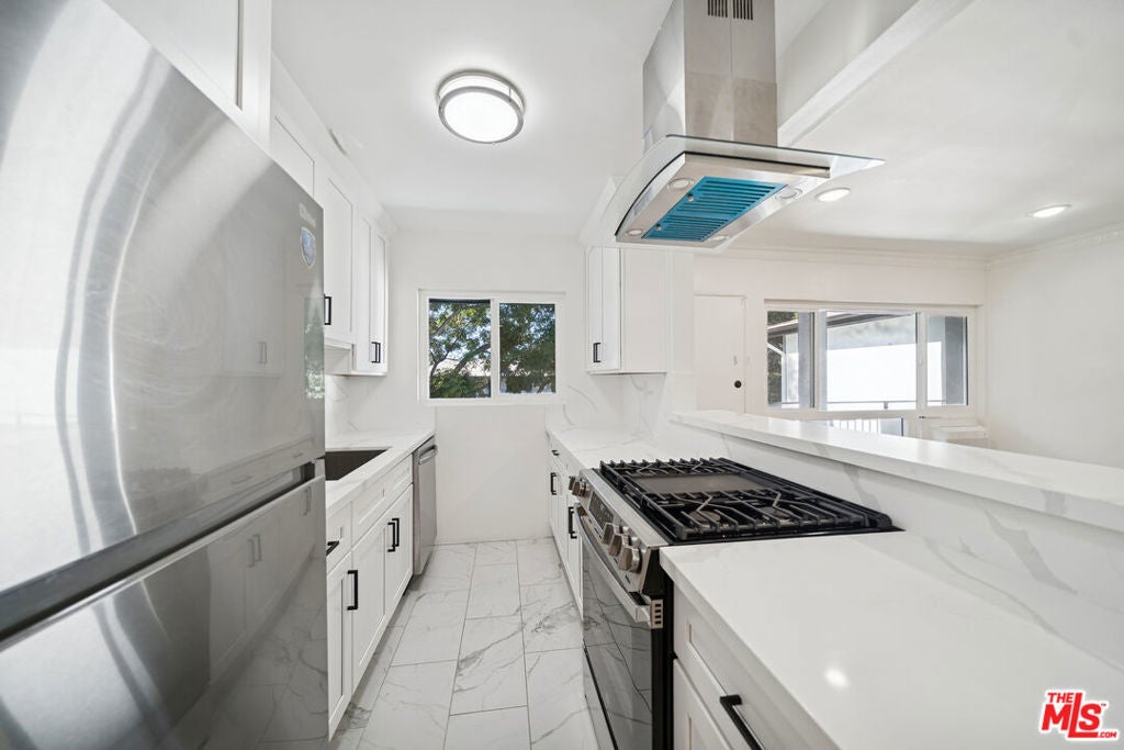 This newly renovated residence at 1206 N Hayworth offers a modern West Hollywood living experience with approximately stated features and thoughtful updates throughout. The layout welcomes abundant natural light that enhances the new hardwood flooring and clean, contemporary design. The remodeled kitchen features quartz countertops, stainless steel appliances, and generous pantry storage, with an adjacent nook suitable for dining or workspace needs. The updated hallway provides additional storage and leads to a refreshed bathroom with modern lighting and cabinetry. The bedrooms offer new flooring, ceiling fans, air conditioning, and ample closet space. The gated building includes on-site laundry, a community pool, and the option for covered parking at an additional monthly cost. Pets are permitted, tenant pays gas, electricity, and trash, and the owner provides water and landscaping. Available for immediate occupancy. All information is approximate and should be independently verified.