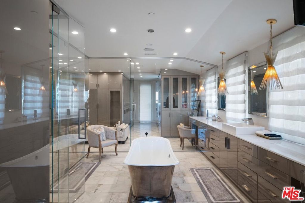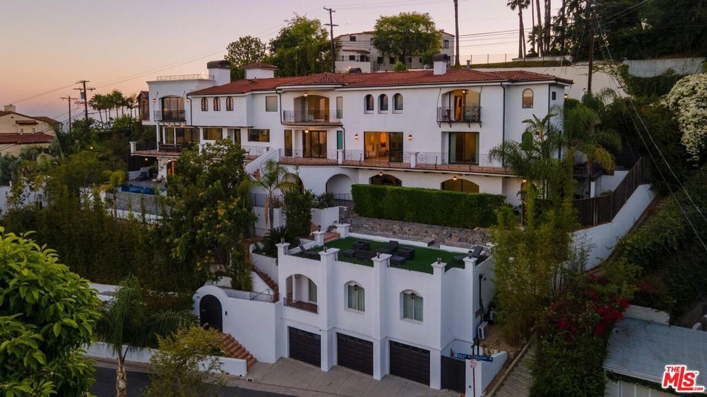 Welcome to "Villa De Bonvue", a masterfully renovated Mediterranean estate perched on a promontory in the prestigious Los Feliz Hills offering jaw-dropping panoramic views from the lush canyons to the glittering skyline of DTLA. Set on a rare street-to-street lot with seven car garage and gated motor court, this architectural gem captures commanding vistas from nearly every room, enhanced by full-length balconies and a rooftop deck designed to frame the city's most iconic landscapes. Every inch of this residence has been thoughtfully curated with luxury in mind featuring white honed travertine, European oak flooring, Italian-imported Bonotti marble, Calacatta Gold countertops, and custom oak and Zebrawood cabinetry. The primary suite is a showstopper with wraparound views, dual spa-inspired bathrooms, a soaking tub, steam and horizontal showers, and boutique-style closets. Unmatched amenities include a movie theater, bowling alley, game room, fitness center, wellness studio, salon, multiple kitchens including a chef's kitchen, and a resort-style infinity pool and spa. A detached guest house adds versatility for hosting or multigenerational living. Within close proximity to Netflix HQ, Griffith Park, The Greek Theatre, and all the best dining, culture, and nightlife in Los Feliz and Hollywood. Exceptional short term rental track record, reach out for STR rental figures. At only $750 a foot, this exceptional compound is arguably the best value in all of the Los Feliz Hills for a home of this caliber. Truly a unbeatable opportunity for the most discerning of buyers.