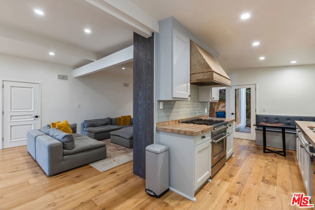 Nestled in the hills, this truly unique property is a one-of-a-kind architectural home and private haven, designed for those seeking both tranquility and style. The residence features a wonderful open floor plan that effortlessly creates an indoor/outdoor flow, making entertaining a delight. Inside, you'll find stunning high-beamed ceilings and a fully remodeled gourmet kitchen that now boasts a Forno range, a new backsplash, painted cabinets, and a convenient built-in banquet. Retreat to the oversized primary suite, featuring a luxurious main bathroom with a walk-in shower and a stand-alone tub facing a majestic window with peaceful views. Two additional bedrooms share a full bath and a Jack-and-Jill closet. Outside, the front patio is enhanced with stylish glass panels, while the rear yard and decks are entirely private and tree-lined, offering a secluded, magical getaway. The home has been comprehensively upgraded for modern peace of mind, including a new roof, new pipes, a new electrical panel, new exterior paint, and all-new recessed lighting throughout, complemented by an upgraded powder room. The property includes an unpermitted fourth bedroom/office. Can be offered furnished for an additional $1,000 a month
