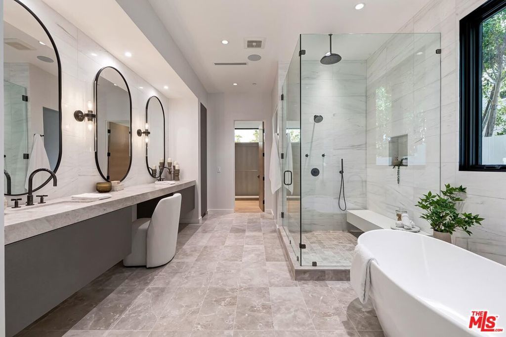 A dazzling, brand new construction on a quarter acre lot south of Ventura Boulevard, this impeccably designed 5 bedroom/8 bathroom home is luxury living at its finest. This 5,900 square ft home has everything a discerning buyer could want: vast, spacious living spaces; open floor plan, natural light, elegant landscaping and enormous backyard with BBQ. The chefs kitchen offers top-of-the-line appliances and an abundance of space for entertaining. In addition to the elegant bedrooms and bathrooms, there is also a state-of-the-art theater, great room, living room, office and elevator to visit each floor with convenient ease. Additional amenities include: 3 fireplaces, designer light fixtures/chandelier, basement gym and bar, solar roof panels (paid off, no cost to buyer), electric water heaters and two laundry rooms. A certified Smart Home that offers Control 4 throughout, this isn't just a magnificent estate but a true architectural achievement.