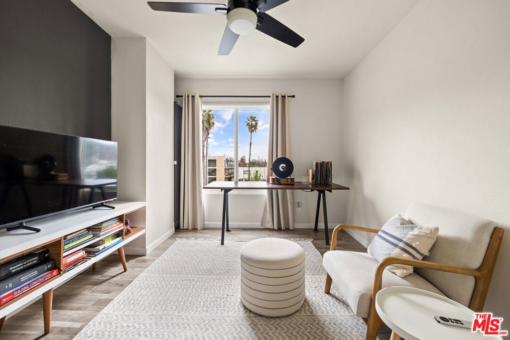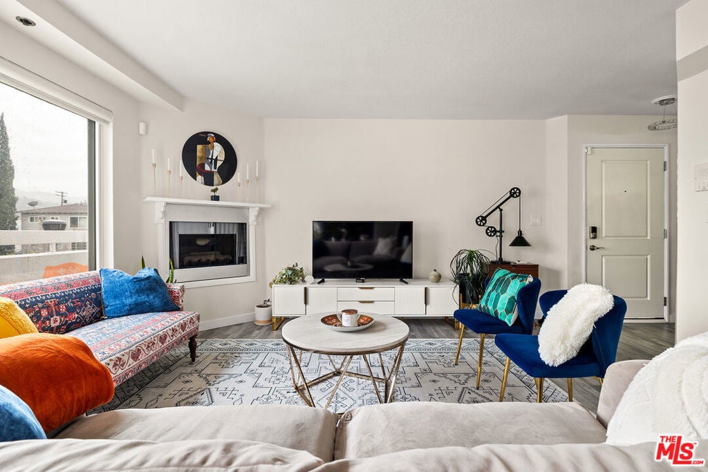 Recently renovated townhome located at the end of a quiet cul-de-sac in Burbank. This end unit showcases 2 bedrooms and 2.5 bathrooms. The first-floor entrance opens to a spacious layout, encompassing the living room, dining room, fireplace, guest bathroom, and kitchen. The dining room boasts an elegant light fixture and leads to a balcony with picturesque views of mountains & palm trees. Journey upstairs to discover the main bedroom suite and a second bedroom with its own private bathroom. The unit has been thoughtfully updated with modern touches and conveniences, including newly installed laminate flooring, updated light fixtures, ceiling fans, washer+dryer in unit, a Ring doorbell, and central air & heat. The secured parking garage offers two side-by-side assigned spaces with direct entry to the building. Just minutes away from contemporary dining, shopping centers, and The Burbank Channel Bikeway; with easy access to the surrounding 101, 5 & 134 freeways.