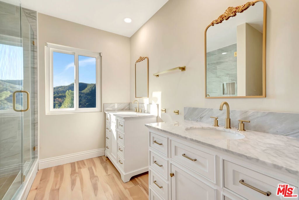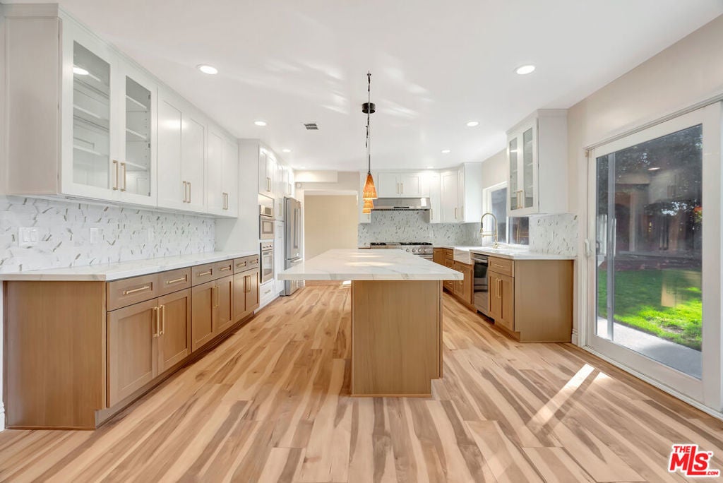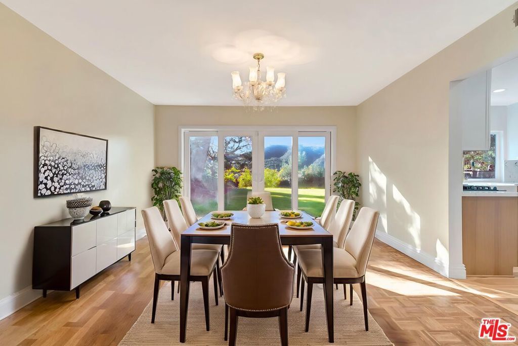Welcome to the prestigious Bel Air Knolls subdivision, ideally located just off world-famous Mulholland Drive, Brentwood. This exceptional estate has been thoughtfully remodeled throughout, including the kitchen, flooring, and bathrooms, showcasing timeless design, refined finishes, and expert craftsmanship that together establish an exceptional standard of luxury living. Exterior & EntryThe home offers striking curb appeal with a grand double-door entry that opens to a dramatic, soaring-ceiling foyer accented by an elegant chandelier, creating an immediate and unforgettable sense of arrival. Living & Entertaining Spaces Upon entry, a spacious open-concept floor plan unfolds, thoughtfully designed to maximize natural light, interior volume, and seamless flow. The formal living and dining rooms, each featuring a fireplace and scenic views, provide an ideal setting for both intimate gatherings and large-scale entertaining, with direct access to the kitchen and backyard. At the heart of the home lies a state-of-the-art chef's kitchen, outfitted with custom cabinetry, a large center island, premium designer appliances, and refined fixtures crafted for both culinary excellence and visual impact. Adjacent to the kitchen, the expansive family room features a working fireplace and picturesque views, enhancing everyday comfort and functionality. Indoor-Outdoor Living home opens to a private, professionally landscaped backyard designed for effortless outdoor living. Enjoy a resort-style pool and spa, lush greenery, and breathtaking views of the Santa Monica Mountains, creating the perfect setting for alfresco dining, morning coffee, evening relaxation, and memorable celebrations. The backyard is easily accessible through elegant sliding doors from the kitchen, family room, and dining room. The residence features five bedrooms and six bathrooms, each finished with bespoke materials and tailored storage. The luxurious primary suite is a true sanctuary, offering a sitting area with a fireplace, a large usable balcony with stunning views, and a spa-inspired bathroom featuring dual vanities, a soaking tub, a separate oversized shower, and a generous walk-in closet. The three additional generously sized bedrooms provide ample closet space, one with an en-suite bathroom, while the remaining two share a well-appointed bathroom with double vanities and a shower. A fifth bedroom with its own full bathroom is conveniently located on the main level, ideal for guests, extended family, or a private home office. Bonus & Additional Spaces large bonus room upstairs, with its own private entrance off the family room and sweeping views, offers exceptional versatility and can serve as a recreation room, playroom, office, or private theater. Additional FeaturesThree-car garage, unrestricted street parking, ideal for large events and gatherings, a downstairs laundry area with washer and dryer hookups, Additional refrigerator for added convenience. Prime Location: Situated in a quiet, safe neighborhood adjacent to award-winning Roscomare Road Elementary School, and close to Steven S. Wise Temple, Mirman School, Buckley School, Curtis School, and Bel Air Presbyterian Church and Preschool. Just minutes from UCLA, Westwood Village, the Getty Center, Beverly Hills, Century City, and Ventura Boulevard. This is a rare opportunity to own a meticulously remodeled estate in one of Bel Air's, Brentwood's most desirable enclaves. A must-see property. Schedule your private tour today.
