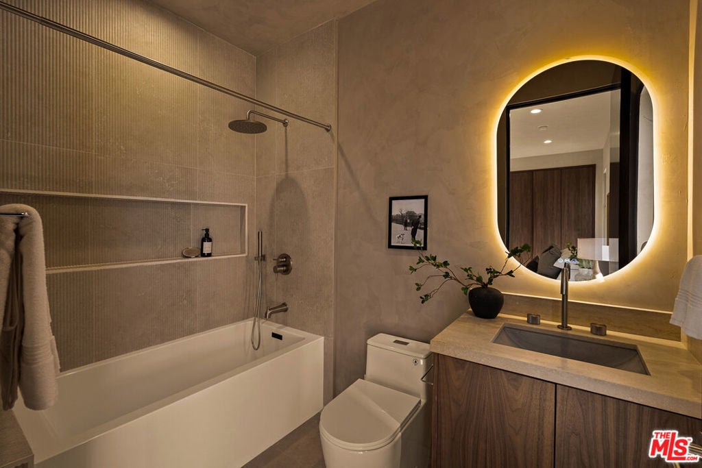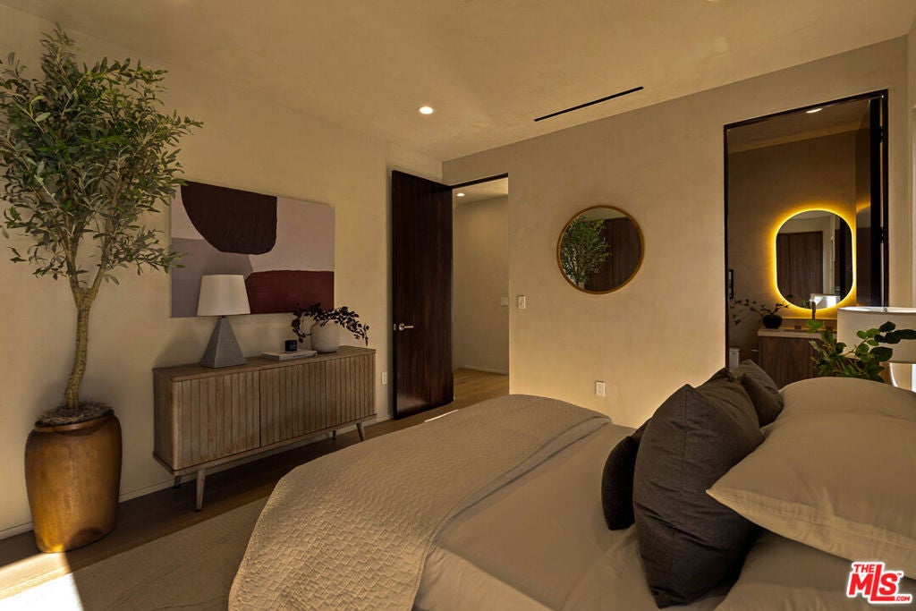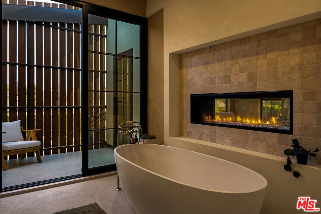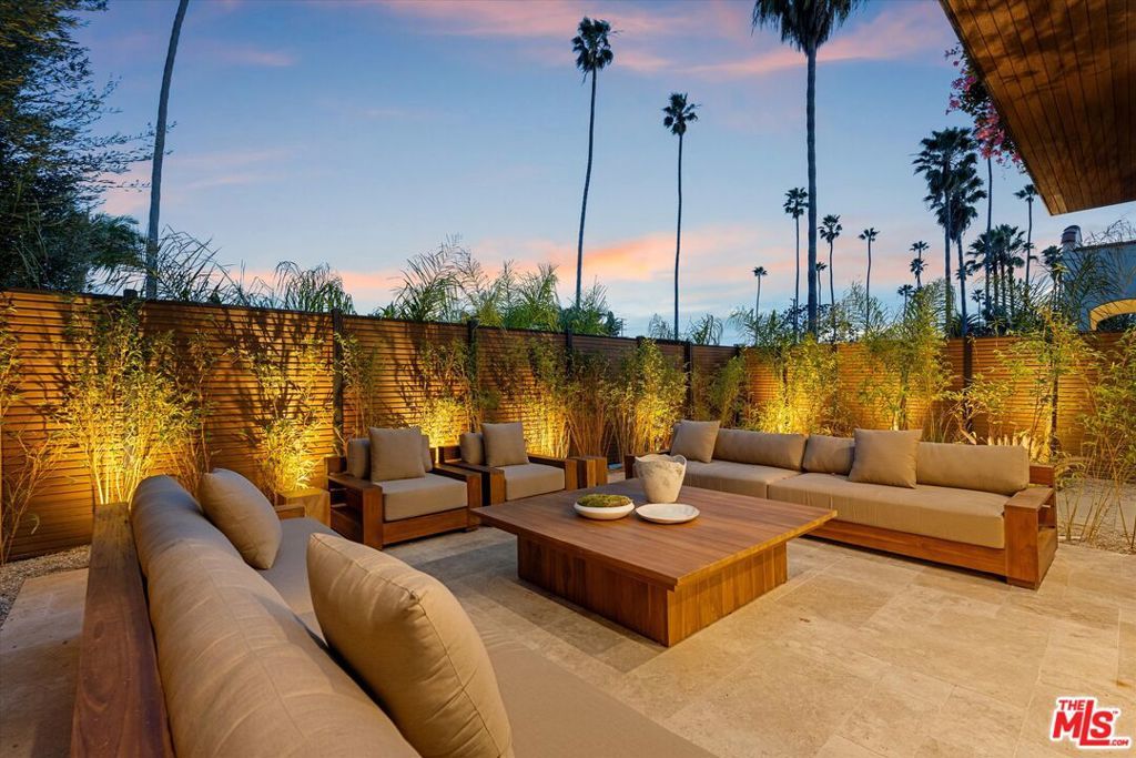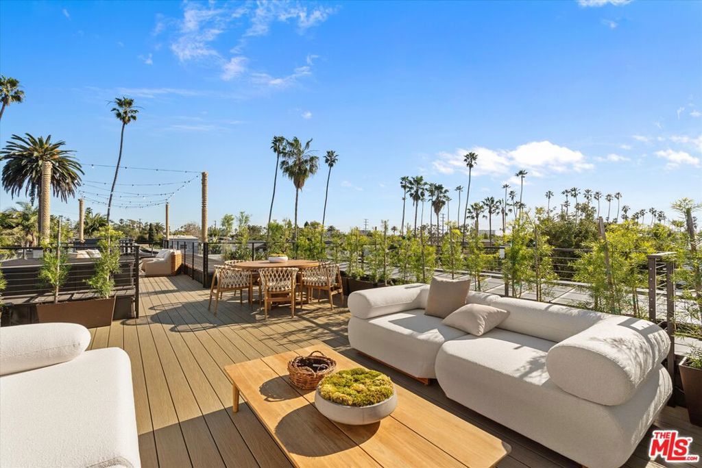 Welcome to this 2026 new construction, private tropical retreat featuring an expansive 895-square-foot rooftop deck with breathtaking 360 degree views of Venice Beach. Every detail has been thoughtfully curated with premium finishes, from Roman clay plaster walls to rich walnut accents, creating a warm yet contemporary aesthetic throughout. Offering over 3,100 square feet of open concept living, the home features 10 foot ceilings, a 77 bottle wine cellar, three fireplaces, and a fully integrated smart home experience. At the heart of the home is an exquisite chef's kitchen with Thermador appliances including dual ovens, custom walnut cabinetry, and a striking quartzite island designed for connection, perfect for conversation while seamlessly bridging the kitchen and living spaces. A dramatic wall of sliding glass doors opens to a resort style outdoor retreat with a sparkling heated pool, built-in BBQ, covered lounge area, and outdoor fireplace, ideal for entertaining and everyday enjoyment. The light filled primary suite showcases vaulted ceilings, a double sided fireplace, a custom walk-in closet, and a private balcony, while the primary bath offers a tranquil escape with a freestanding soaking tub, custom walnut vanities, and a triple head shower. An additional 895 square foot rooftop deck with cafe lighting and a fire pit offers panoramic treetop, city, and mountain views overlooking the heart of Venice. The home includes four en-suite bedrooms, an additional office, and five thoughtfully designed bathrooms, along with a private two-car garage with space for an additional vehicle secured by an automatic electric gate. The landscaped front yard is surrounded by bamboo and palm trees, all set on a wide, tree lined street West of Lincoln just moments from Abbot Kinney, world class dining, and the iconic Venice Beach capturing the essence of elevated Westside living.