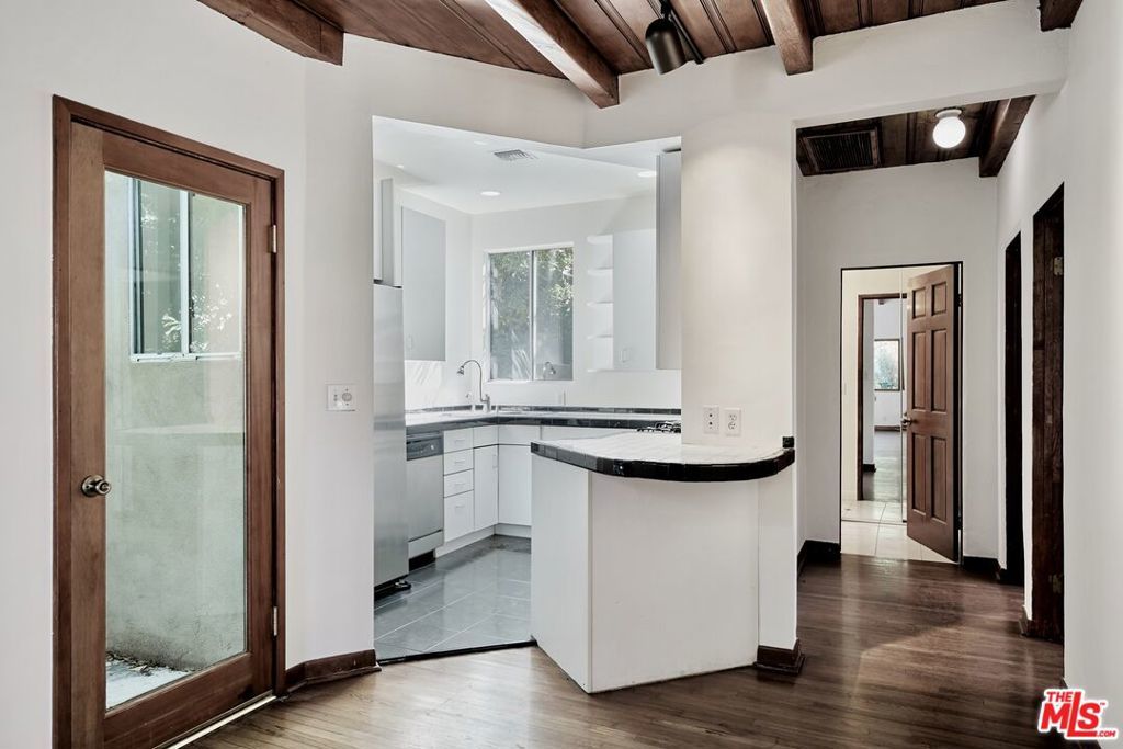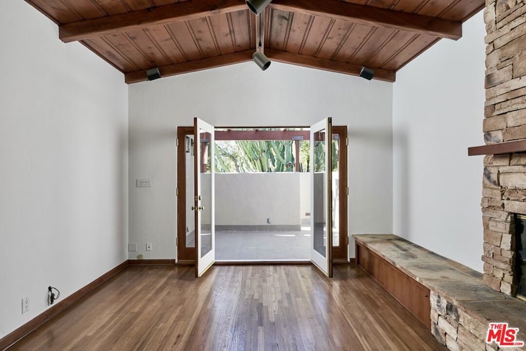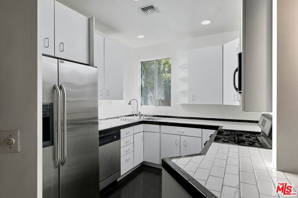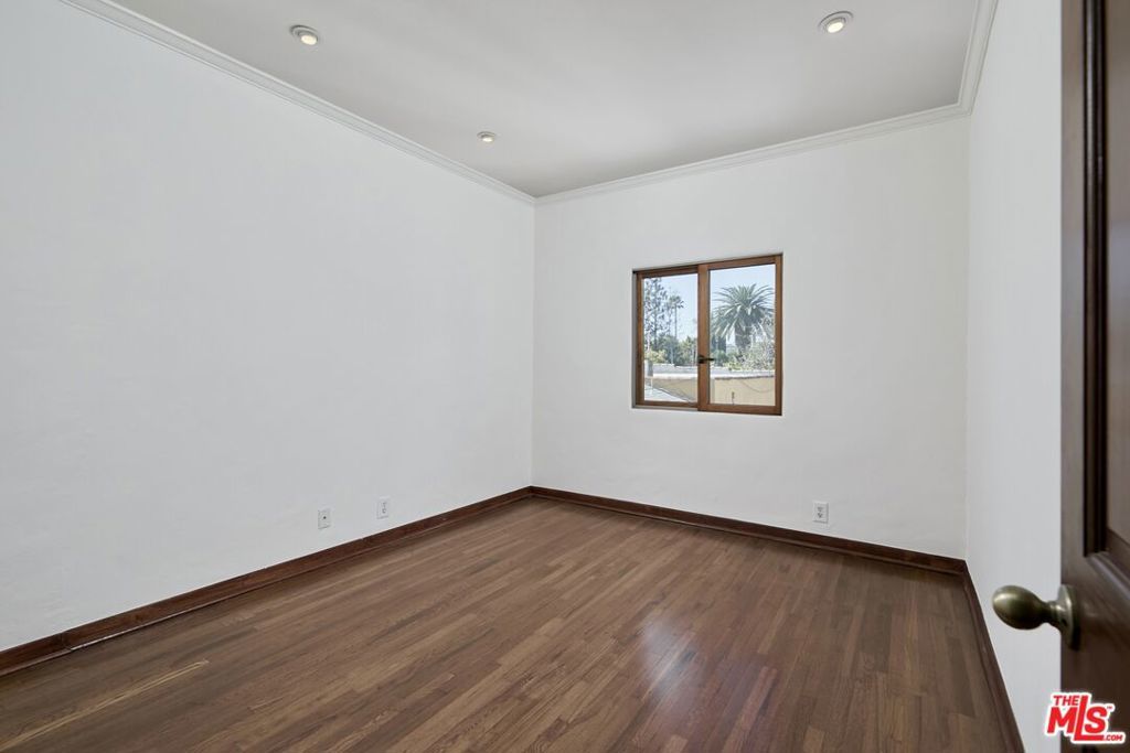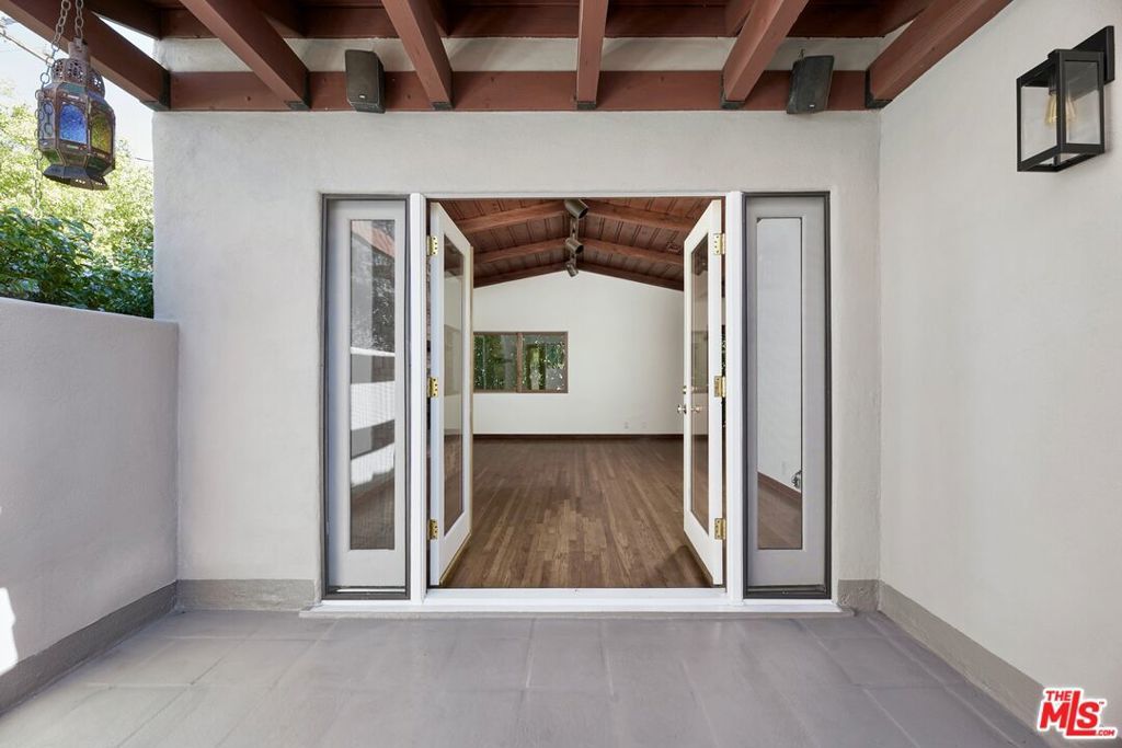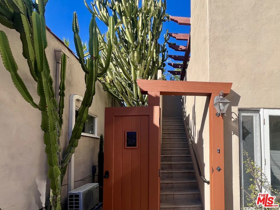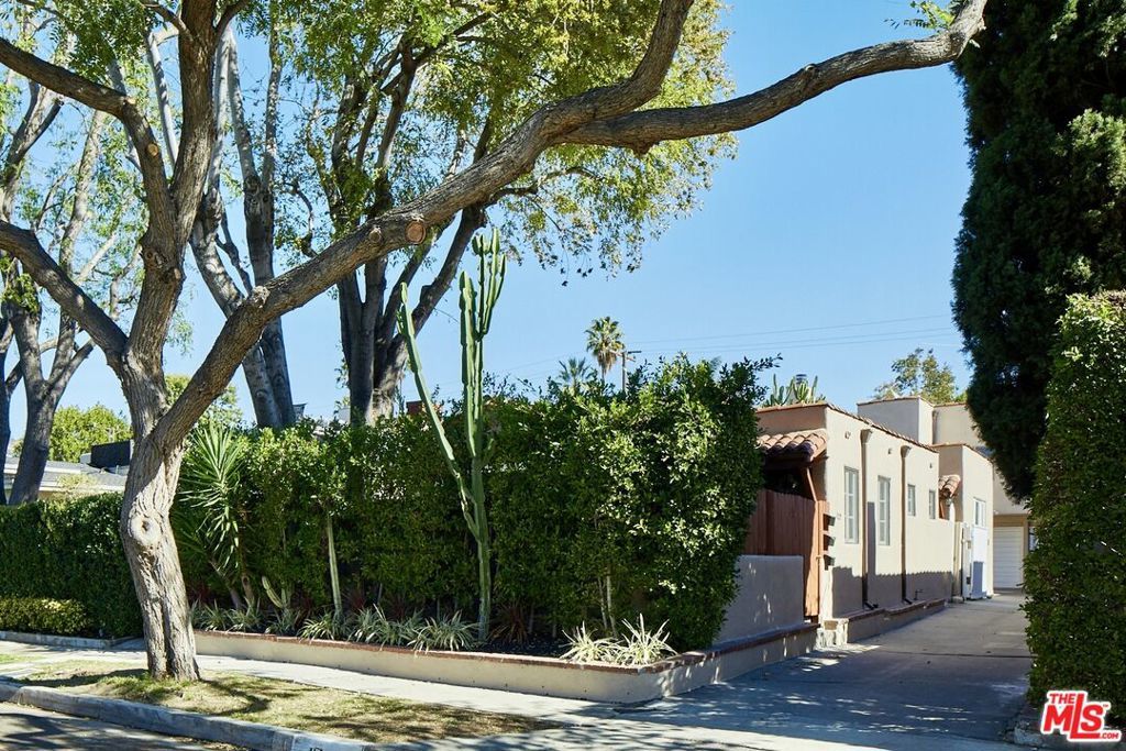 Beautiful & elegant 1930s Adobe style triplex. This top-floor single-story apartment has no common walls and is located on a quiet tree lined street in the premier, Western part of West Hollywood. A private secure entry leads up a set of stairs to an open-walled outdoor patio. French door opens to the living room with high vaulted ceilings and a fireplace. Lush tree-top views create a truly private experience. Hardwood floors throughout. Master bedroom has large walk-in closet. Bathroom has tub/shower. Private one-car garage. No fee washer & dryer. Short walk to Urth Caffe, Pacific Design Center, Beverly Center & Cedar Sinai.