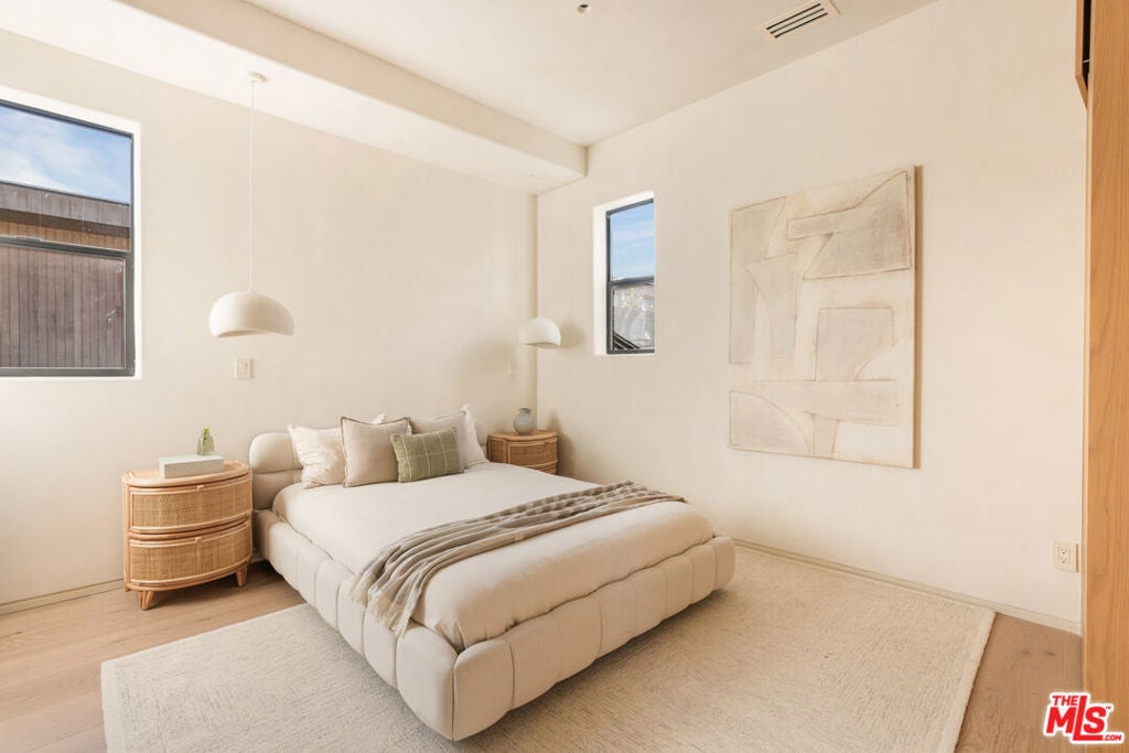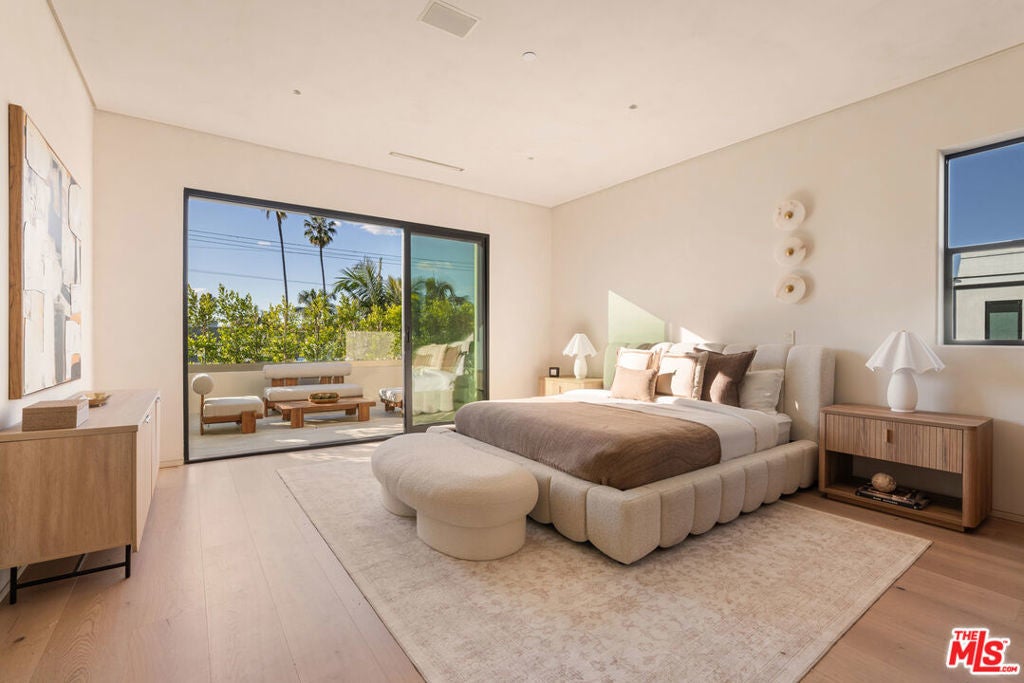 Located in one of LA's most sought-after enclaves, this Mediterranean-inspired residence exemplifies modern craftsmanship and elevated living. Upon entry, asculptural spiral staircasegracefully wraps around a mature olive tree, rising beneath a dramatic skylight that fills the foyer with natural light and sets a striking architectural tone. Inside, travertine finishes, plastered walls and contemporary curves create a seamless flow of texture and form throughout. Expansive, wall-to-ceiling sliding glass doors dissolve the boundary between the living spaces and the manicured backyard, flooding the interiors with natural light and enhancing effortless indoor-outdoor living. The chef's kitchen anchors the home with refined materials and meticulous detailing, ideal for both everyday living and hosting. Outside, the backyard unfolds as a private resort-style retreat, featuring a pool and spa, built-in BBQ and lush landscaping designed for year-round enjoyment, while a detached ADU provides flexibility for guests, work or extended living. Upstairs, the primary suite serves as a serene sanctuary with two expansive walk-in closets and a spa-like bathroom complete with a soaking tub. Two additional bedrooms occupy the second level, offering comfort, privacy and thoughtful separation. Complete with a two-car garage and exceptional attention to detail throughout, this smart home delivers a rare blend of architecture, function and lifestyle, quietly positioned near boutique shopping and acclaimed fine dining in one of Los Angeles' most coveted neighborhoods.