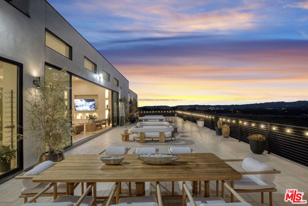 This newly built fully furnished modern residence is a private sanctuary designed for both elevated living and everyday comfort. Tucked behind gates for complete privacy, the home opens into an expansive open-floor plan where clean architectural lines, soaring ceilings, and walls of glass frame breathtaking views of a protected nature reserve, the city skyline, and surrounding mountain ranges.The main living area flows effortlessly between two distinct living spaces, each enhanced with integrated surround sound and carefully designed dim lighting to set the perfect mood whether for entertaining or quiet evenings at home. A sleek fireplace anchors the view adding warmth and sophistication while drawing the eye toward the panoramic scenery beyond.At the heart of the home is a chef-inspired kitchen paired with a fully equipped prep kitchen, ideal for hosting and elevated culinary experiences. Every detail reflects modern luxury, from professional-grade steam units to high-end finishes that blend function with refined style.The residence features four full en-suite bedrooms, each thoughtfully positioned to capture uninterrupted views and provide a sense of retreat. The primary suite is spa-like in design, offering a serene escape that feels immersed in nature. A dedicated meditation room adds an intentional space for mindfulness, reflection, or yoga.Outdoor living is just as impressive, with two private decks that extend the living experience into the landscape, perfect for morning coffee, sunset gatherings, or peaceful moments overlooking the reserve and mountains. A three-car garage provides ample space and convenience. Located in a highly desirable area with access to excellent schools, this home offers the rare balance of seclusion and accessibility just 12 minutes from Topanga Mall and nearby amenities. It's a modern masterpiece that delivers privacy, views, and thoughtful luxury in every detail.