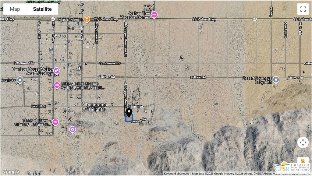Rare chance to own a premier parcel of vacant land in the heart of the High Desert of Joshua Tree. This expansive property offers peace, privacy, and panoramic views of the iconic Mojave landscape surrounded by rugged desert terrain, native Joshua Trees, and uninterrupted horizon vistas. The location captures the spirit of Joshua Tree living: open space, endless skies, and a canvas for your desert dream. Located minutes from the vibrant Joshua Tree Village, buyers enjoy easy access to eclectic shops, art galleries, cafes, and world-class outdoor recreation. Joshua Tree National Park, with more than 3 million annual visitors is also just a short drive away, offering hiking, rock climbing, stargazing, and more. Whether you're envisioning a private retreat, off-grid homestead, or investment property, this site delivers exceptional potential in a highly sought-after desert community. Experience unobstructed views, pure serenity, and the freedom to build your vision in one of Southern California's most iconic landscapes.