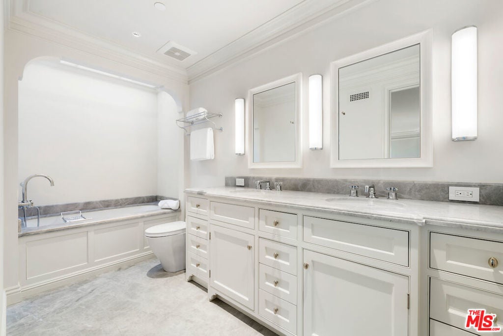 Situated in Beverly Hills by renowned restaurants, schools, parks, and the shopping districts, this immaculate furnished Townhouse offers all of the best aspects of California living. This new furnished residence can be leased six months or longer. Constructed with classic aesthetics, timeless finishes, and luxury upgrades, it includes two bedrooms, two full bathroom and one-half bathroom across two floors. Secluded behind lush landscaping and a secure wrought iron gate, a private grassy lawn leads to a sun-drenched layout with oversized windows that span the main living and dining areas. Adjacent to the dining room sits the whitewashed kitchen complete with custom cabinetry, Carrera marble countertops and top of the line appliances. Also, a dedicated laundry room and additional storage. Upstairs, the primary suite is highlighted by a windowed walk-in closet and en-suite marble bathroom with dual sinks, skylit shower and separate soaking tub. The secondary bedroom includes custom built-in closets and lies next to a marble bathroom with a skylit shower and soaking tub. Additional features include wide plank hardwood flooring & detailed crown molding throughout.