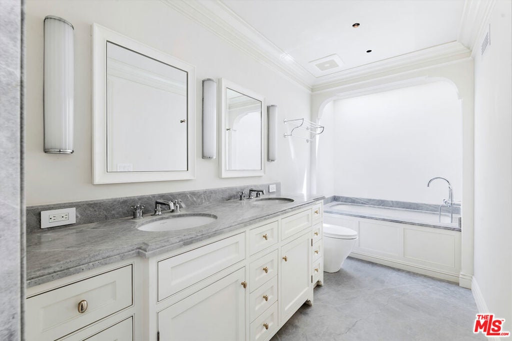 Situated in Beverly Hills by renowned restaurants, schools, parks, and the shopping districts, this immaculate furnished Townhouse offers all of the best aspects of California living. Constructed with classic aesthetics, timeless finishes, and luxury upgrades, it includes two bedrooms, two full bathroom and one-half bathroom across two floors. Secluded behind lush landscaping and a secure wrought iron gate, a private grassy lawn leads to a sun-drenched layout with oversized windows that span the main living and dining areas. Adjacent to the dining room sits the whitewashed kitchen complete with custom cabinetry, Carrera marble countertops and top of the line appliances. Also, a dedicated laundry room and additional storage. Upstairs, the primary suite is highlighted by a windowed walk-in closet and en-suite marble bathroom with dual sinks, skylit shower and separate soaking tub. The secondary bedroom includes custom built-in closets and lies next to a marble bathroom with a skylit shower and soaking tub. Additional features include wide plank hardwood flooring & detailed crown molding throughout.