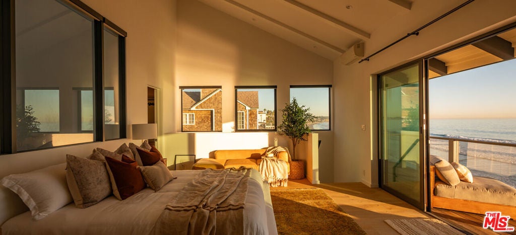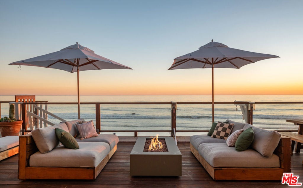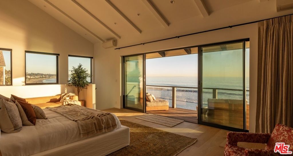 Welcome to The Point Break Estate, an irreplaceable Broad Beach architectural masterpiece. Reimagined in 2025, this 3-bedroom, 3-bath beachfront estate offers panoramic ocean views with direct, private steps to the beach at iconic Trancas Point. Designed as a statement of modern surf-luxe-eco coastal excellence, the residence delivers seamless indoor-outdoor living with Fleetwood walls of glass and a rare Zero-Carbon design, powered by a 30-panel solar array, full battery backup, EV charging, and all-electric systems. The dramatic great room, crowned by soaring glass ceilings, features European white oak floors, hand-finished micro-cement walls, and dual living zones anchored by a striking Net-Zero E holographic fireplace. The world-class chef's kitchen boasts imported Italian white oak cabinetry, an oversized island with seating for five, Taj Mahal quartz countertops, and top-tier Gaggenau appliances. Outdoors, the oceanfront deck serves as a private resort with a cedar hot tub, fire pit, dual grills, and front-row sunset seating. The ocean-view primary suite on the upper level is a true sanctuary with a private balcony, Net Zero E holographic fireplace, spa-level bathroom, dual showers, a limestone hybrid soaking tub with ocean views, and a custom, natural-light-filled walk-in closet. Two refined guest suites complete the layout. Additional highlights include a remodeled two-car garage, full smart-home integration, and approved plans for a 1,100-sq-ft expansion (buyer to verify). Make this dream a reality.