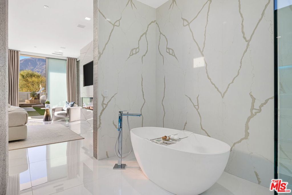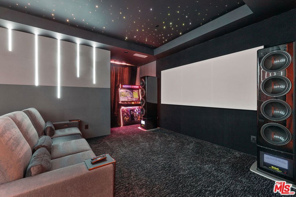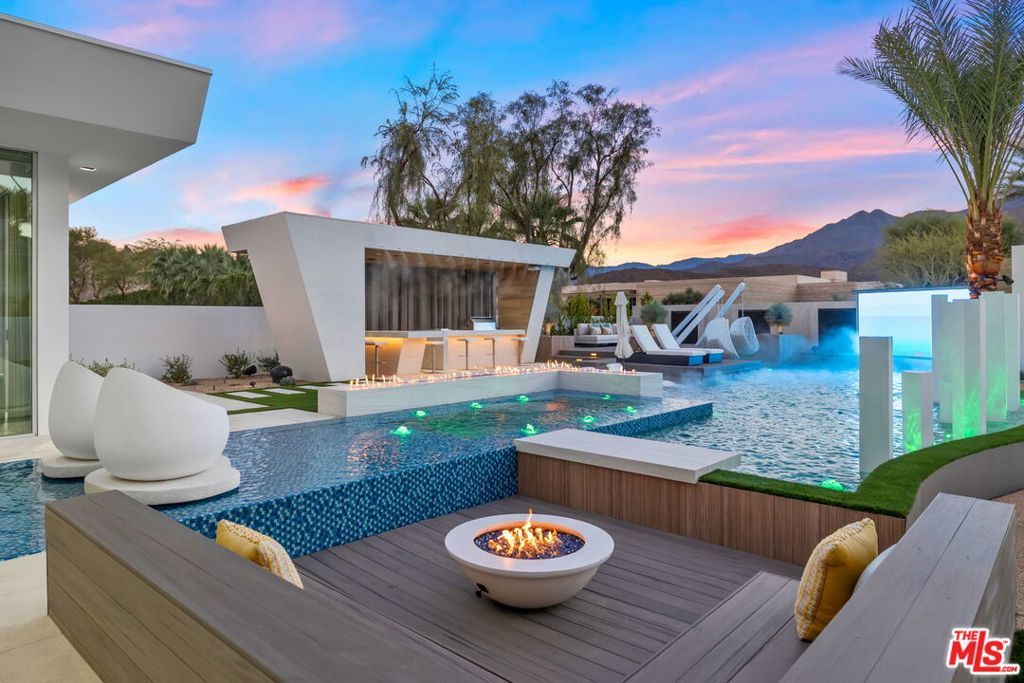 A striking contemporary estate located within the highly exclusive Quarry at La Quinta offers an elevated approach to desert luxury, blending cutting-edge design with a focus on wellness and innovation. Designed by renowned architect Brian Foster with landscaping by Foxterra, the 3,000+ square foot estate features full Josh AI smart home integration for seamless control of lighting, climate, security, and entertainment. Designed to accommodate both everyday comfort and elevated entertaining, the expansive open floor plan is framed by walls of sliding glass that dissolve the boundary between interior and exterior spaces. The home's private cinema is a true centerpiece, outfitted with rare McIntosh subwoofers, premium Triad speakers, and a Sony ultra-high-definition 4K projection system. With more than $1.2 million invested in bespoke audio-visual enhancements, the theater delivers an immersive sound and visual experience that rivals and exceeds elite commercial venues. Outdoor spaces are equally striking, with a resort-style front yard pool and a massive 156" outdoor TV ideal for entertaining under the desert sky. The sleek modern kitchen offers high-end appliances, custom cabinetry, and a spacious island. Eco-conscious features include solar panels, circadian lighting, and whole-home water filtration. Located within the exclusive Quarry community home to a Tom Fazio designed private golf course, clubhouse, and tennis courts this fully furnished, move-in-ready home offers unmatched privacy, luxury, and proximity to La Quinta dining, El Paseo shopping, and Indian Wells tennis.