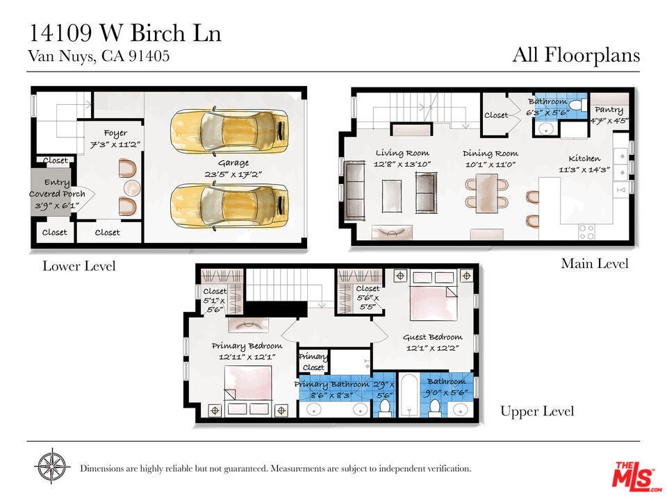 Welcome to 14109 W Birch Ln, a contemporary 3-story townhome offering the perfect blend of elegance and practicality in one of the San Fernando Valley's most convenient locations. Featuring 2 bedrooms, 2.5 bathrooms, and 1,520 square feet of thoughtfully designed living space, this residence showcases modern updates and refined finishes throughout. Step inside to discover an inviting open-concept layout highlighted by laminate flooring, recessed lighting, and granite countertops that elevate every detail. The kitchen shines with white cabinetry & newer stainless steel appliances for effortless functionality. New light fixtures and updated half bath add a touch of sophistication to the main level. Upstairs, the primary suite offers comfort and style with a dual vanity bath and walk-in closet, while smart home features such as a Nest thermostat, doorbell camera, and security system provide modern peace of mind. Enjoy the convenience of an attached 2-car garage, central heat and A/C, and eco-friendly readiness with prewiring for solar and an EV charger.Ideally situated in the center of the valley, this home is just minutes from top shopping, dining, parks, and entertainment. Whether you're relaxing at home or exploring all Van Nuys has to offer, this townhome presents a rare opportunity to experience urban comfort with modern flair.