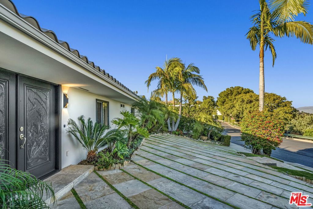 FURNISHED/UNFURNISHED. VIEWS!!! 4 BEDS/3,5 BATHS PLUS GYM/OFFICE. Tastefully remodeled with HIGH-END LUXURIOUS designer finishes. This SINGLE LEVEL marvelous Mid-Century home is an absolute STUNNER. Boasting PANORAMIC CANYON AND MOUNTAIN VIEWS from ALL the living spaces and bedrooms, this sensational home will take your breath away the moment you step inside. FLOOR-TO-CEILING picture windows, glass doors and abundance of natural light throughout instantly provide the feeling of an open and airy elegance. Featuring an OPEN-CONCEPT, WELL-DESIGNED FLOOR PLAN, this home has a great indoor/outdoor flow. You'll love to host guests and loved ones in the backyard complete with a breathtaking ENORMOUS DECK, a resort-like sparkling pool (featuring lustrous and dazzling glass tiles reminiscent of rainbow-like play of colors), spa, and serene waterfalls. Additional features include one-of-a-kind RAINFOREST MARBLE, ONYX, TRAVERTINE, CEASERSTONE, GRANITE FINISHES, state-of-the-art APPLIANCES, 2 car garage PLUS a circular driveway. Located on a quiet street with no neighbors across, next to the guarded, upscale Beverly Park community. WELCOME HOME!