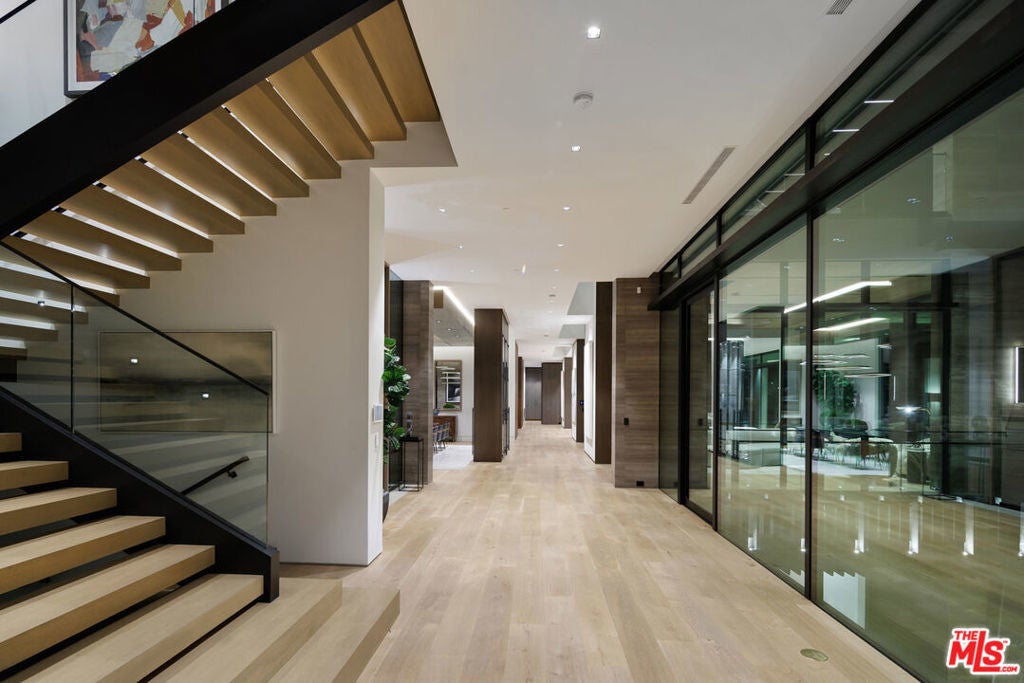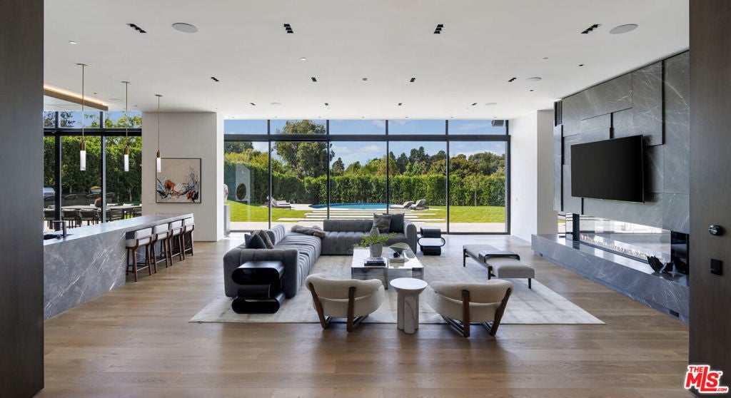 Welcome to The Monocle, an exquisite newly built estate nestled in one of Holmby Hills' most prestigious and private neighborhoods. Situated at 615 Faring Road, this architectural gem boasts breathtaking views of the valley, mountains, and treetops, enveloping you in tranquility and luxury. Spanning three spacious levels, this 6-bedroom, 12-bath retreat offers an array of thoughtfully designed living spaces. The chef's kitchen is a culinary dream, featuring top-of-the-line Miele ovens, two mini wine cellars, and a cozy kitchen nook perfect for casual dining. Each bedroom is a sanctuary, complete with ensuite baths and generous closet space. The opulent primary suite is a true haven, showcasing a private balcony, a cleverly integrated camouflage ceiling TV, dual closets, a cozy fireplace, and two luxurious full baths. Additional amenities include two well-appointed laundry rooms, an office, an elevator for effortless access, and a dedicated wine cellar. The lower level is a spectacular entertainment hub, complete with a stylish bar and a resort-style gym and spa featuring a pool, yoga room, and massage area. Outdoors, the manicured grounds invite you to relax by the pool and spa or host gatherings in the fully equipped BBQ kitchen. Located just minutes from esteemed institutions like Harvard-Westlake Middle School, Westwood, and Beverly Hills, 615 Faring Road is not just a home; it's a lifestyle of luxury and sophistication.