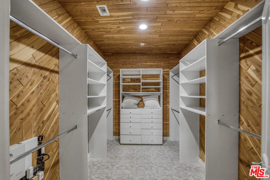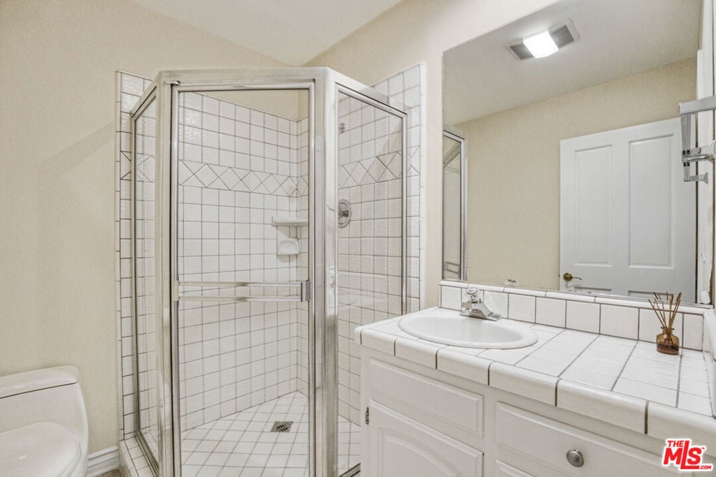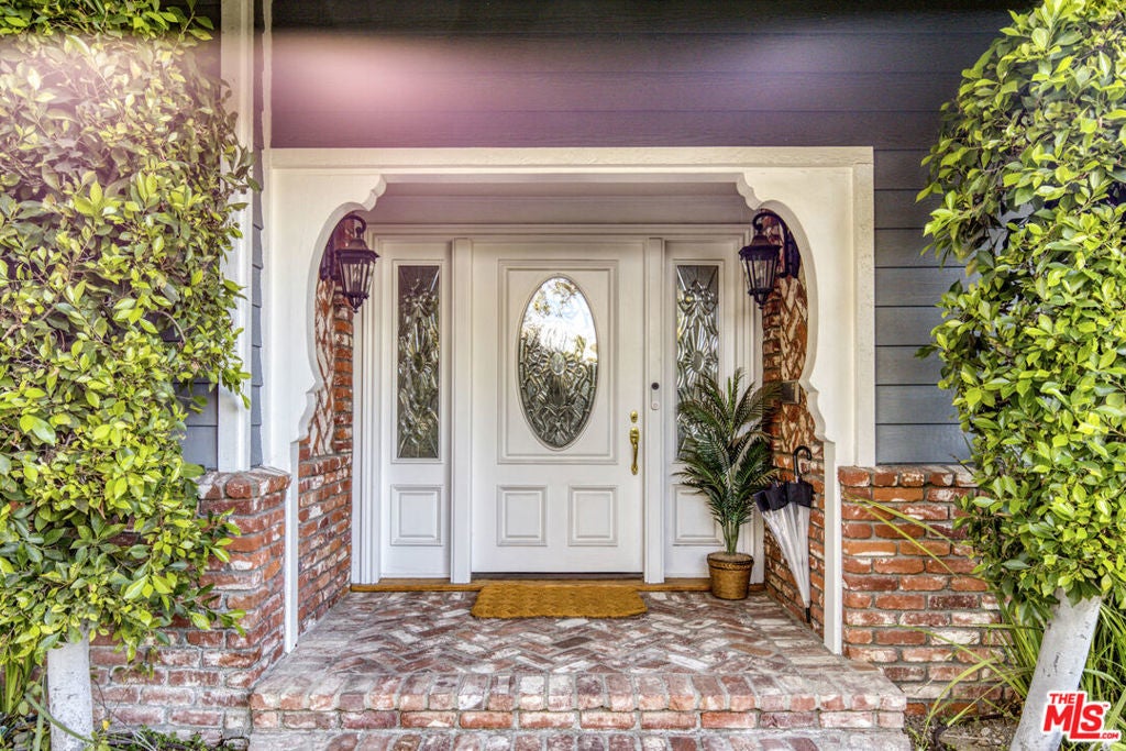 Privately set within the coveted Royal Woods enclave of Sherman Oaks, this mid-century Traditional estate offers a rare blend of architectural character, refined design, and resort-style living. Mature citrus and avocado trees frame the property, creating a lush, serene setting that feels worlds away yet remains moments from the city. The interiors unfold with a graceful sense of flow, where open, light-filled living spaces transition seamlessly for both everyday comfort and elevated entertaining. The grand living room is anchored by a fireplace and enhanced by wood floors, crown molding, soaring ceilings, and expansive wraparound windows capturing sweeping mountain views. At the heart of the home, the chef's kitchen makes a bold statement with custom cabinetry, premium appliances, high-end granite surfaces, and a custom stainless steel hood and bar highlighted by a striking geostone countertop showcasing 50-million-year-old fossilized fish, a true conversation piece. Two luxurious primary suites offer flexibility and privacy, including a secluded second-level retreat with a spa-inspired bath featuring a Victoria + Albert soaking tub, steam shower, granite countertops, Columbia cabinetry, framed mirrors, and a dedicated makeup vanity. A custom second-floor landing with built-in cabinetry and desk creates an ideal home office or study. The main-level primary suite features an elegant en suite bath with separate tub and shower, granite counters, and custom window treatments. Completing the first floor are three additional bedrooms, three bathrooms, a powder room, a warm den with fireplace, wine bar, and a dedicated laundry room.Designed for the quintessential Southern California lifestyle, the home opens to an exceptional outdoor entertaining environment. The resort-style backyard features a fully appointed outdoor kitchen with a 48" DCS barbecue, prep and sink stations, refrigerator, dishwasher, stainless steel cabinetry, big-screen TV, and pergola with integrated heater. A half basketball court, pool and spa, fire pit, and thoughtfully layered landscaping accented by Bouquet Canyon stone and lush greenery create a private, tranquil retreat. Offering the perfect balance of retreat and connection, this Royal Woods residence delivers a lifestyle defined by comfort, sophistication, and ease. Tucked within one of Sherman Oaks' most desirable neighborhoods, the home is moments from highly regarded schools and Ventura Boulevard's vibrant dining and shopping scene, with easy access to the Westside presenting a rare opportunity to enjoy peaceful living without sacrificing proximity to the best of Los Angeles.