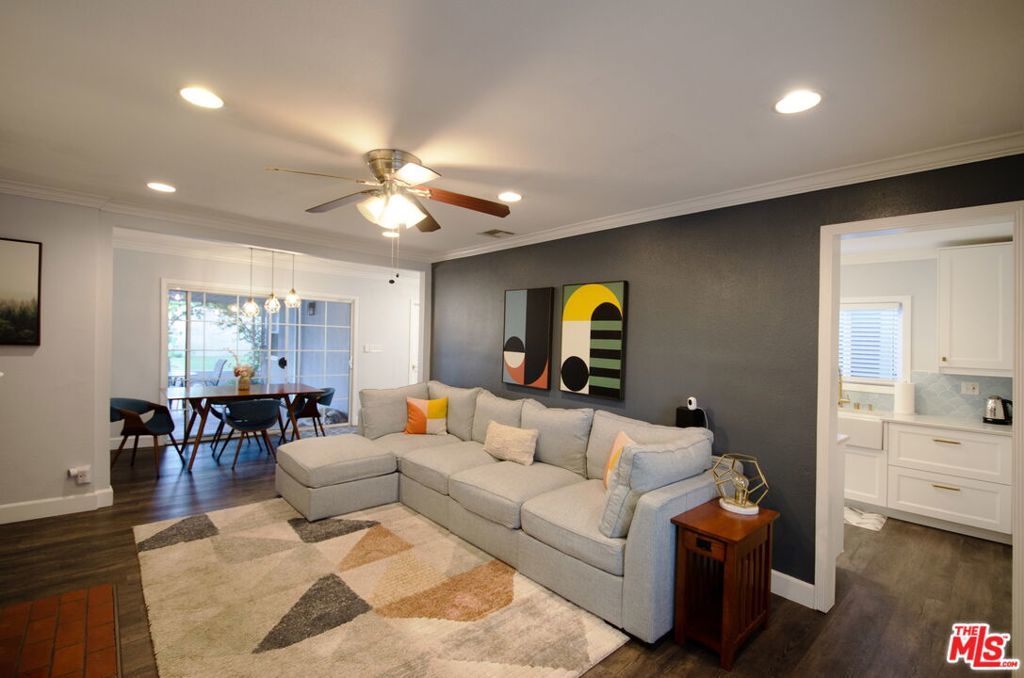 Beautifully updated 3 bed, 2 bath home in Northridge with an open floor plan. Spacious living room, dining room with a cozy fireplace. The dining area opens to a patio with a large back yard and a putting green for entertainment. Updated kitchen with beautiful cabinets and appliances, updated bathrooms, crown molding, new flooring throughout the home and a new roof makes this turnkey home a must have. The house is centrally located nearby parks and restaurants and even boasts a custom-made storage unit on the property. Don't miss this opportunity to own this beautiful home.