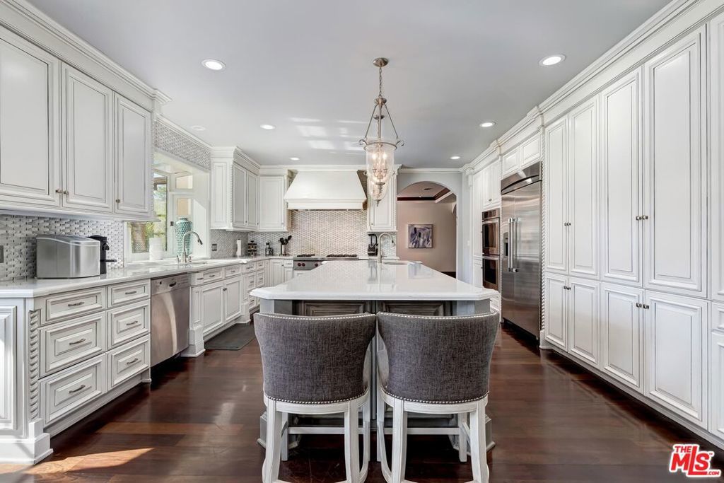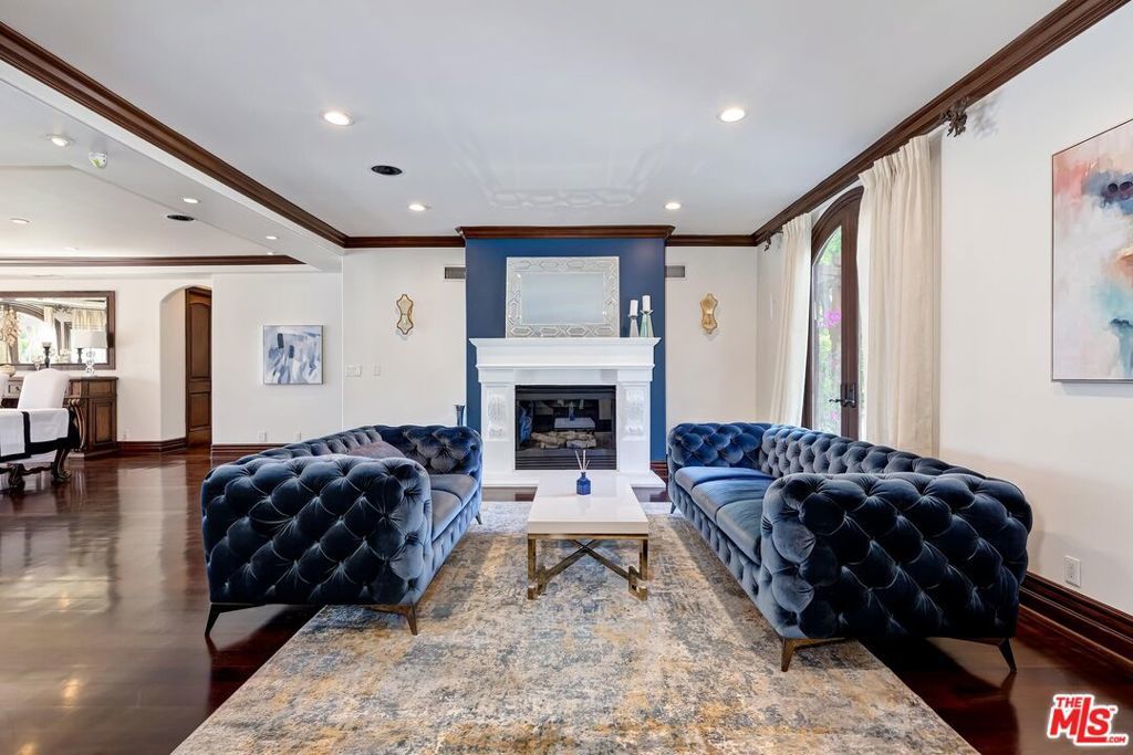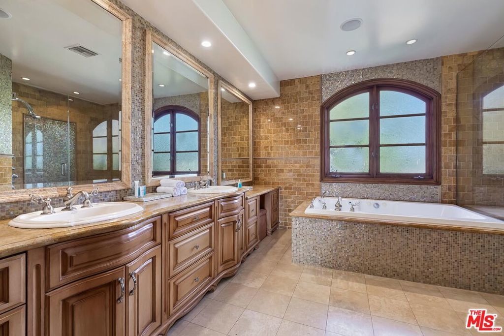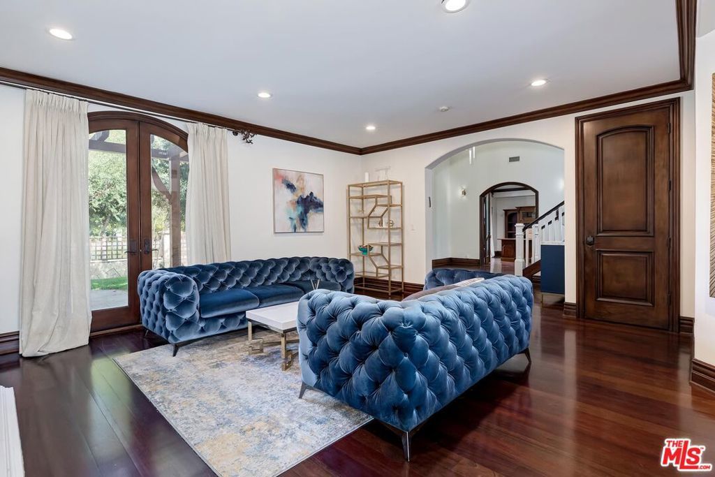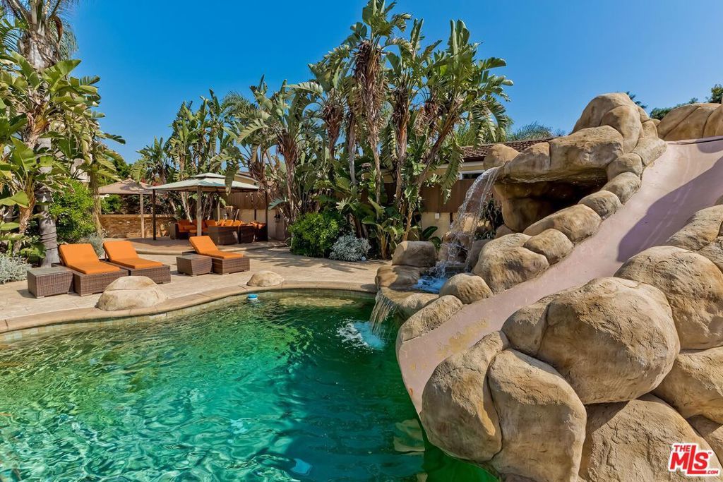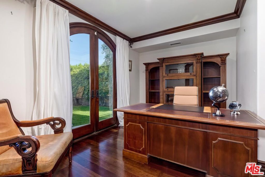 A luxurious & unique Fully Furnished Mediterranean Estate with a touch of modern living, unlike any other, with top-of-the-line privacy and security throughout. A sweeping staircase with ultra-high ceilings, a mix of wood & stone floors welcome you to the warm formal living room with a custom fireplace adjacent to a beautiful dining room with large picture windows for ample natural light. Beautiful stone floors guide you to a warm & modern family room with fireplace and wooden built-ins. Across is the awe-inspiring kitchen with a beautiful island and breakfast bar, designer stainless steel appliances, breakfast nook, and all conveniences for the gourmet chef. Upstairs, the primary suite showcases a fireplace, incredible closets, and a large balcony with views of the backyard oasis. The large spa-like master bath boasts soaring ceilings, large rain shower, dual vanity, and a soaking tub. The sprawling grounds feature a sparkling pool, spa with waterfall, BBQ center, Sports Court, spacious entertainment area and a pool cabana. Close to houses of worship, NOHO WEST shopping center, dining and freeway accessible near 170 and 101. A true one-of-a-kind estate. Don't let this one get away!