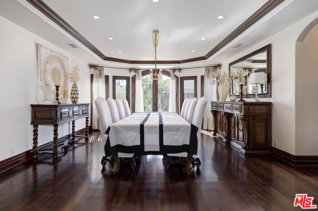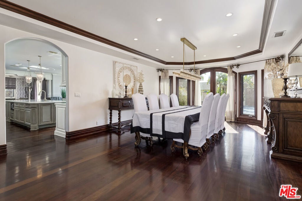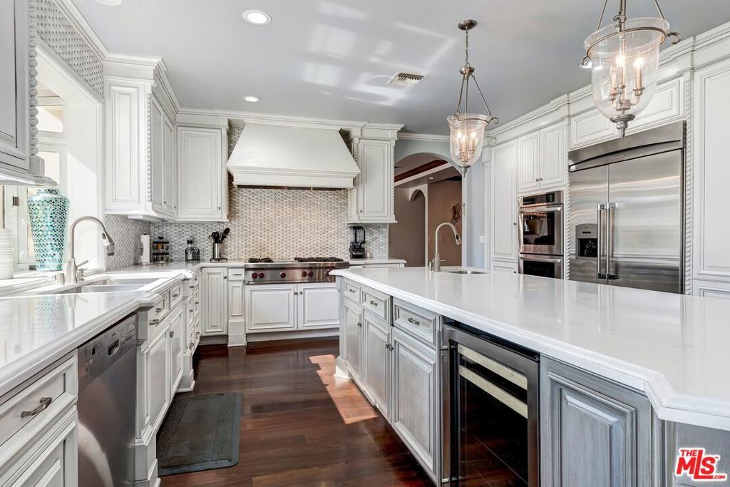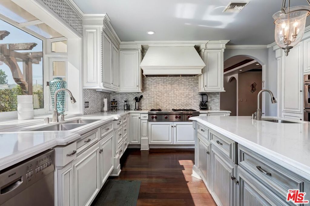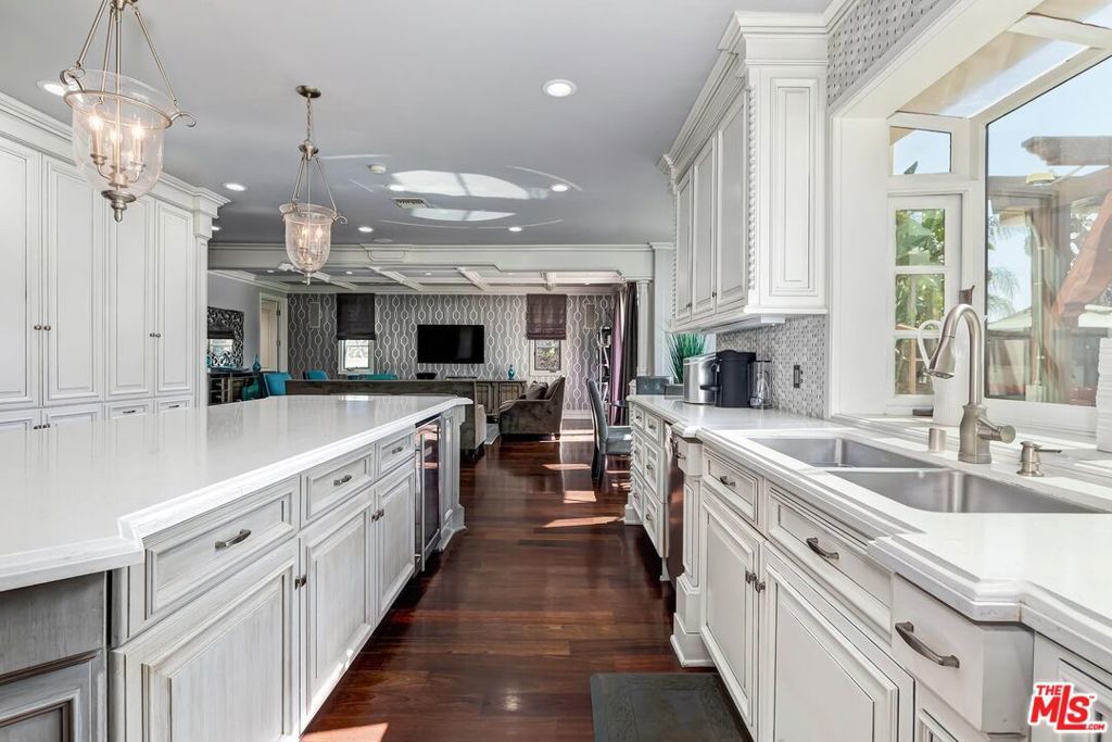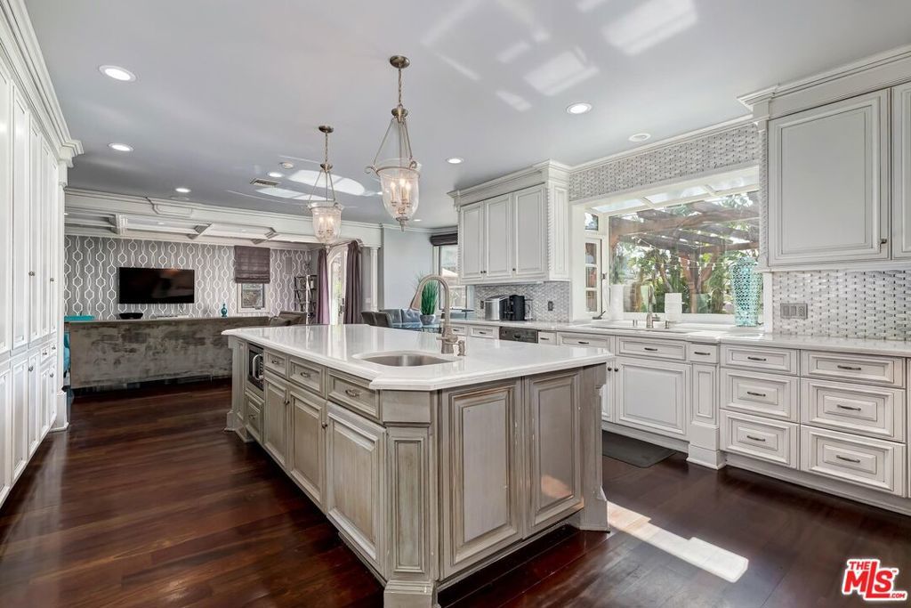 A luxurious & unique Fully Furnished Mediterranean Estate with a touch of modern living, unlike any other, with top-of-the-line privacy and security throughout. A sweeping staircase with ultra-high ceilings, a mix of wood & stone floors welcome you to the warm formal living room with a custom fireplace adjacent to a beautiful dining room with large picture windows for ample natural light. Beautiful stone floors guide you to a warm & modern family room with fireplace and wooden built-ins. Across is the awe-inspiring kitchen with a beautiful island and breakfast bar, designer stainless steel appliances, breakfast nook, and all conveniences for the gourmet chef. Upstairs, the primary suite showcases a fireplace, incredible closets, and a large balcony with views of the backyard oasis. The large spa-like master bath boasts soaring ceilings, large rain shower, dual vanity, and a soaking tub. The sprawling grounds feature a sparkling pool, spa with waterfall, BBQ center, Sports Court, spacious entertainment area and a pool cabana. Close to houses of worship, NOHO WEST shopping center, dining and freeway accessible near 170 and 101. A true one-of-a-kind estate. Don't let this one get away!