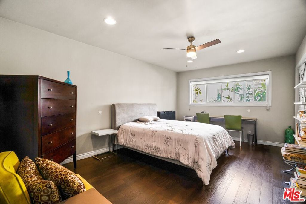 Metropolitan Urban Chic Oasis in Santa Monica! Exclusive controlled-access 14-unit courtyard enclave with lush landscaping. This top floor retreat with serene greenery views. Rich textured engineered wood floors across the entire unit with an expansive living room anchored by a classic brick gas fireplace. There is a seamless transition to the outdoors through elegant French doors to redone full balcony. Architectural depth is defined by elegant crown moldings and recessed lights in all rooms. Substantial full dining room that's capable of housing a full scale table, New grey wood sleek kitchen cabinetry and stainless steel appliances with quartz countertops with beautiful glass tile backsplashes and full granite sink. In-unit full size gas laundry provides ultimate in-home convenience and an updated dual- pane Milgard windows to optimize thermal insulation. Generously sized bedroom scaled to accommodate a dedicated workspace, Redone walk-in shower room with integrated bench seating and double vanity. Secured gated parking with storage and Low homeowners dues.Premier location that balances residential tranquility w/immediate urban access. Perfectly positioned near World-Class Medical hubs St. John's and UCLA. Short distance to UCLA campus and public transportation and Close to Bristol Farms, Whole Foods, Trader Joes and Erewhon