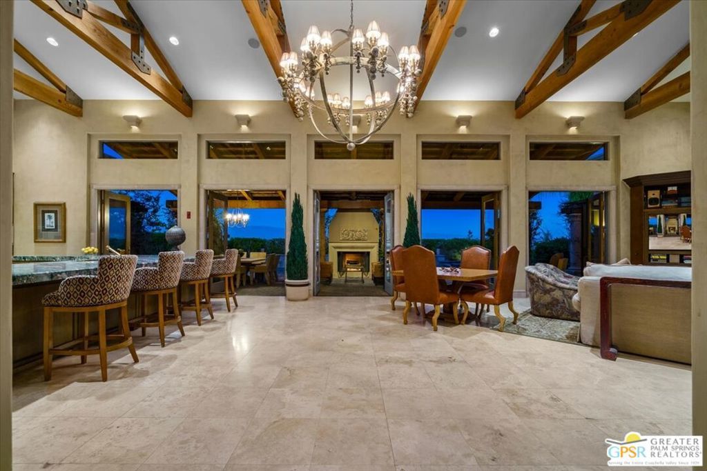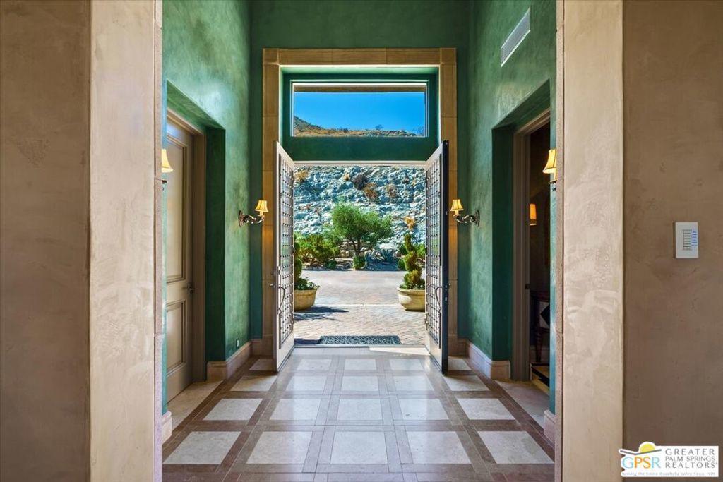 Old World charm meets desert luxury in the heart of Rancho Mirage. Nestled within a coveted enclave, 2 Nebulae Way offers the perfect balance of serene desert living and high-style luxury. This gated Tuscan-inspired estate embodies the romance of Mediterranean architecture with its warm stone facade, arched entryways, and rich craftsmanship, all set against the dramatic backdrop of the Santa Rosa Mountains. Designed for both intimate living and grand entertaining, the home features a chef-inspired kitchen with adjacent butler's pantry, spacious open concept living areas, and resort-style outdoor areas complete with a sparkling pool, spa, and multiple lounge settings. Whether hosting sophisticated soirees or enjoying tranquil mornings, every moment feels curated and exceptional. This unique property was designed and built by the late noted desert developer and designer, Jim Baker, and is being offered with the custom furnishings created locally and especially by him for this home. Beyond the gates, Rancho Mirage offers world -class golf, fine dining, and the cultural vibrancy of Palm Springs just minutes away. 2 Nebulae Way is more than a home- it is a private sanctuary for those who appreciate privacy, beauty, and the art of desert living.