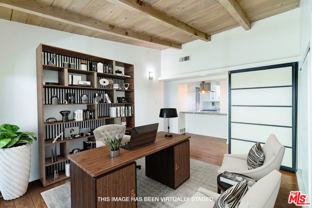 Welcome to this gorgeous 4 Bed/2 Bath single story home located right in the heart of Woodland Hills. Step through the front door and into the bright living room, with vaulted ceilings, large windows, space for dining, and stunning hardwood flooring, that continues throughout the house. The Chef's kitchen offers beautifully updated countertops, an abundance of pantry space, and is well-equipped with range, refrigerator, and dishwasher. The primary bedroom is spacious, with built in wardrobes, dressing area, and ample space for a king-size bed. The primary ensuite has been remodeled, with striking tile floors, and an attractive glass shower stall. The other 3 bedrooms offer wonderful accommodations for family & friends, or could easily be used as office space; perfect for working from home. Outside, the beautifully landscaped backyard features a large, recently upgraded swimming pool with waterfall, children's play house, and impressive covered patio area that is a great space for grilling. Other conveniences include; a well-appointed guest bathroom, 2-car garage parking, 2 additional side yards, hook-ups for washer & dryer and central air & heating. Close to the 101 Freeway, and the restaurants, shopping, and entertainment of Woodland Hills, come make this beautiful house your home today!