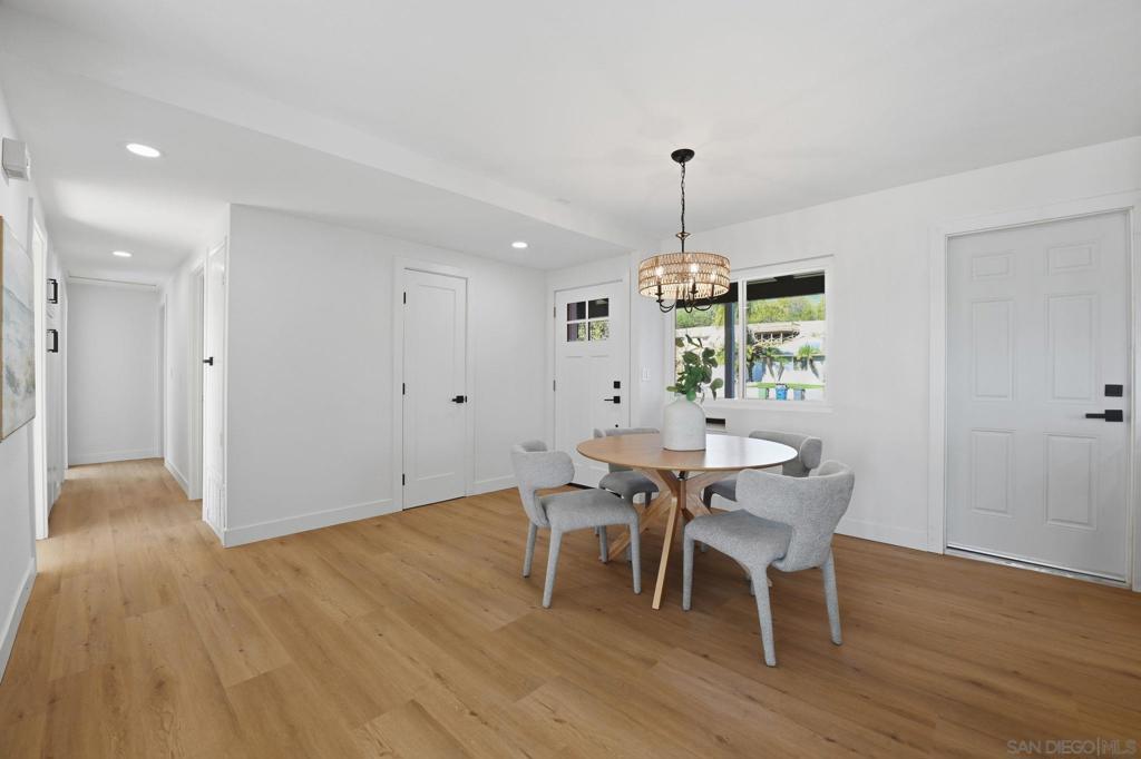 Welcome to 9789 Lutheran Way in Santee, a beautifully updated 4-bedroom, 2-bath home offering modern upgrades and scenic views. The home features a stylish kitchen with custom modern cabinetry and sleek countertops, designed for both functionality and everyday living. A designer fireplace with a striking tile surround anchors the living space, creating a warm and inviting atmosphere. The backyard is ideal for entertaining or relaxing, complete with a fire pit, fresh sod, and gorgeous views. Conveniently located near parks, shopping, dining, and easy freeway access. This move-in-ready home combines comfort, style, and outdoor enjoyment in a desirable Santee neighborhood.