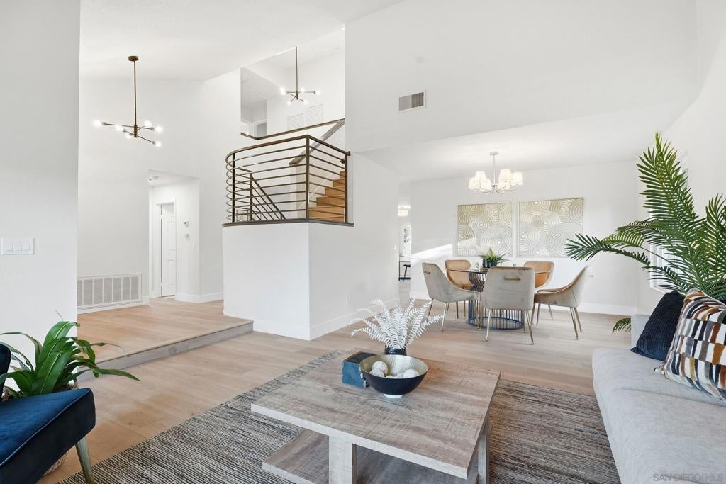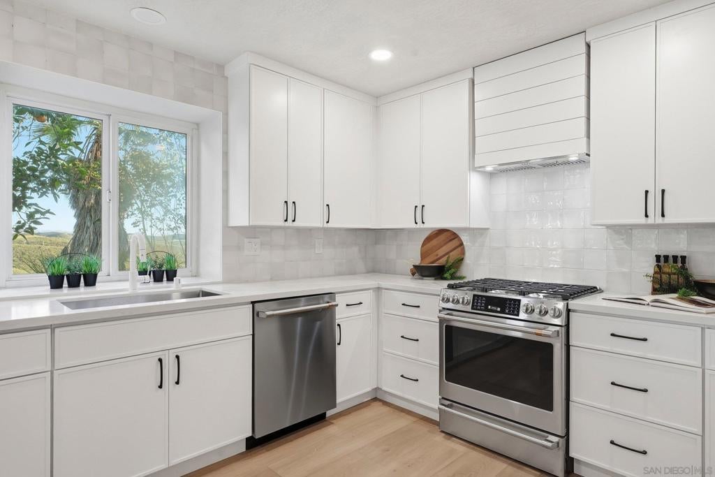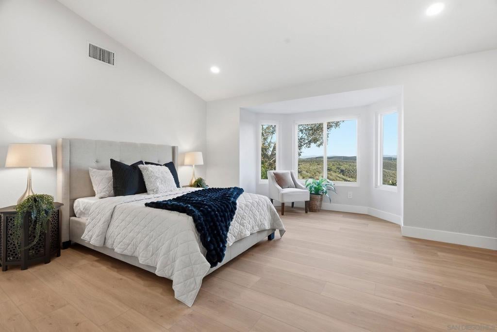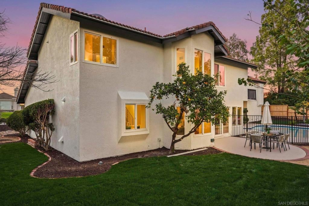 Tastefully renovated Scripps Ranch home offering unobstructed canyon views, a rare four-car garage, and a seamless opportunity for ADU conversion. The home features Alabaster slim-shaker cabinetry throughout, paired with elegant marble-style quartz countertops and brand-new appliances. Oak luxury vinyl plank flooring, fresh interior paint, new light fixtures, solar, and two new HVAC systems (2-ton and 4-ton) complete the extensive upgrades. All four bathrooms have been fully updated with tile or LVP flooring, refined tile surrounds with custom niches, and modern finishes. The primary suite is a true retreat, featuring a freestanding soaking tub positioned to enjoy the canyon views. The upper level offers exceptional flexibility, overlooking the pool and featuring a spacious great room, balcony, wet bar, second laundry room, and two bedrooms connected by a Jack-and-Jill bathroom. This area is on a separate electrical panel and AC system, making it an easy conversion to a private guest suite or ADU. Outdoor living shines with a resurfaced pool and spa, complete with new heater and equipment, all surrounded by a generously sized Trex deck. The property also includes grassy areas ideal for kids and pets, all set against breathtaking canyon vistas. With abundant storage and a four-car garage perfect for vehicles, toys, or a workshop, this home delivers both luxury and versatility in one of Scripps Ranch’s most desirable settings.