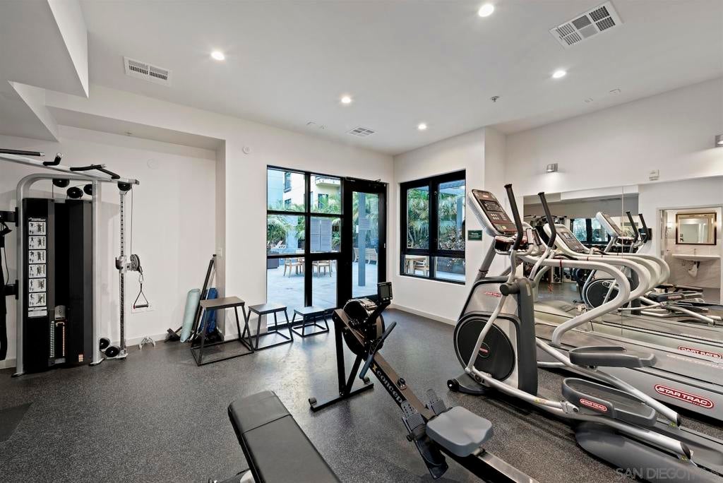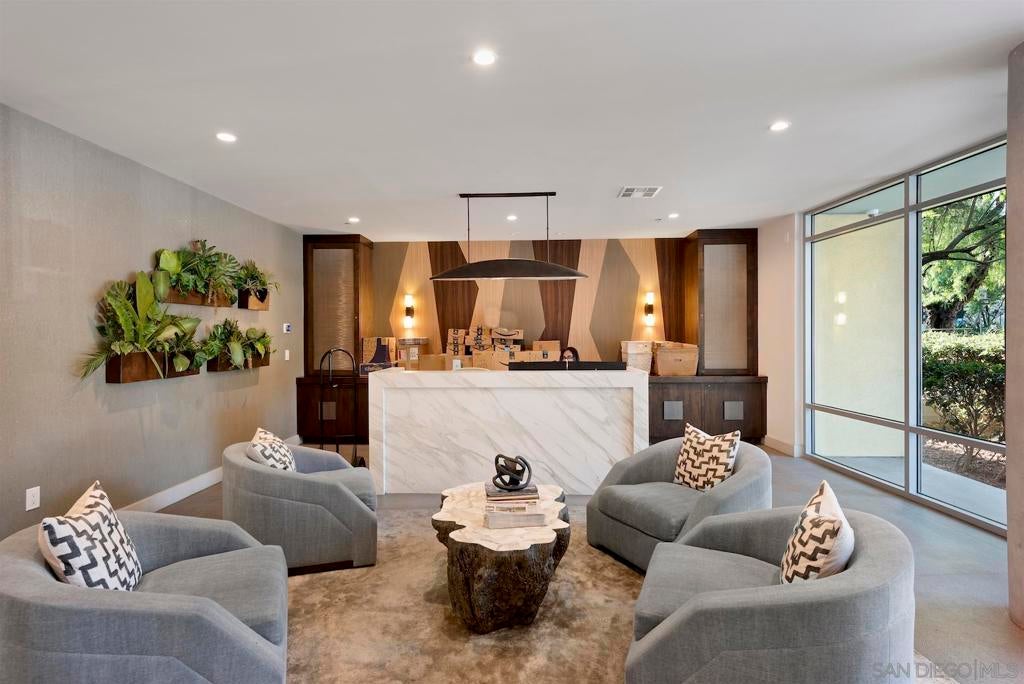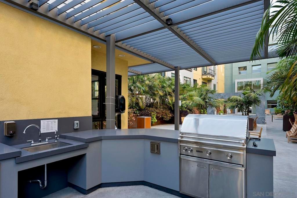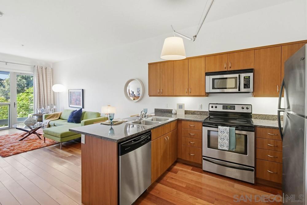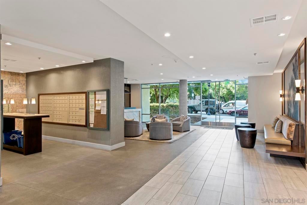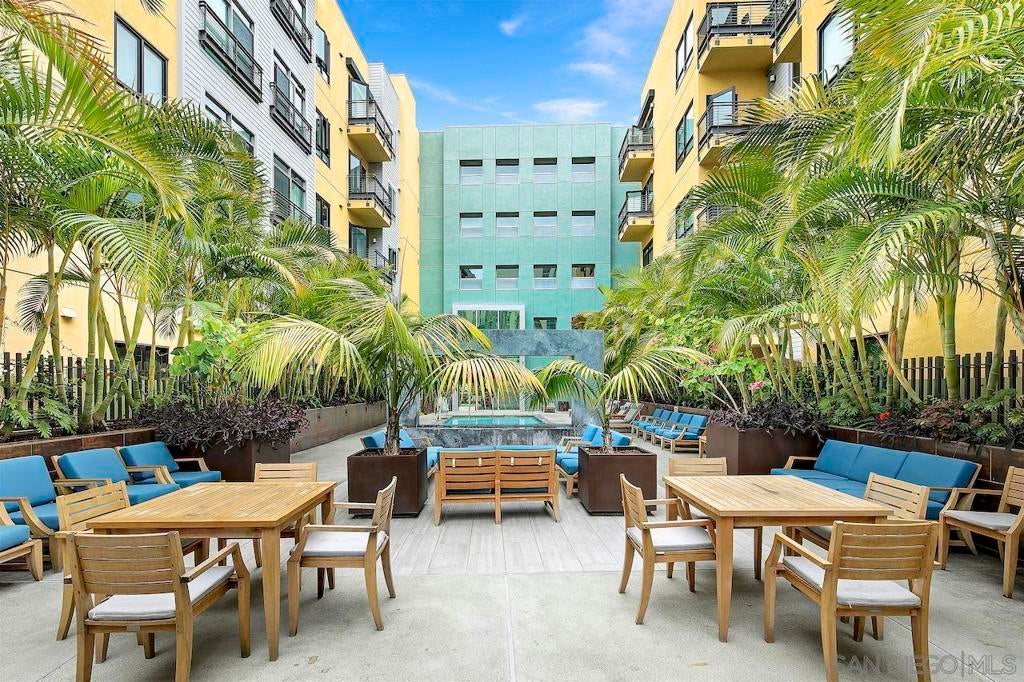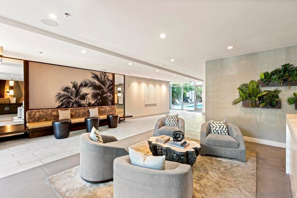 Live in the quaint Cortez Hill neighborhood in this beautiful, turn-key 1-bedroom residence. The open-concept layout is enhanced by high ceilings and luxury laminate plank flooring throughout. Enjoy sunsets from your private west-facing balcony overlooking the city. The kitchen features granite countertops and a breakfast bar. Additional highlights include central air conditioning and an in-unit laundry closet with washer and dryer, and 1 deeded parking space in underground garage. The building amenities include a pool, spa, gym,fire pit sitting area, BBQ area, and concierge staff 7 days a week. Easy freeway access. Walk to Little Italy, Gaslamp & Balboa Park from this central location.