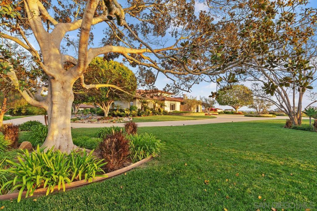 Powerful Opportunity in Rancho Santa Fe Covenant! Totally redone 5 years ago with incredible quality & design. Unparalleled Panoramic VIEWS, with long-private, gated driveway adorned w/ mature trees boasting 10,000+SF of refined ONE-LEVEL living on 3.26 manicured acres. A rarity in 92067, offering natural gas, sewer, underground utilities, full owned Solar, a symphony of modern tech & elegance awaits w/ integrated smart home features: Sonos surround, WiFi-app enabled appliances, climate control with 5-HVAC zones & high-level security. Luxe limestone & white oak grace the interiors while overnight guests enjoy the touch of Fabrica in secondary suites. Detached GH offers serene retreat: full kitchen, bath, & private patio overlooking Tennis Court, Putting Green, never-ending Views & Southern CA sunsets. Enjoy seamless indoor/outdoor living w/expansive veranda w/auto-screen shades, bar-height firepit, dynamic pool and cascading ponds set the stage for ideal entertaining. Roaring fireplaces in the great room & formal dining, exec home office w/custom cabinetry & Calacatta accents, private home theatre, temp-controlled wine cellar. Luxe primary suite is an escape to unparalleled relaxation w/ true spa-like bath complete w/ sauna, custom soaking tub & wellness massage area. Chef's gourmet kitchen boasts top-of-the-line Wolf appliances, dual islands w/ refrigerated drawers & walk-in pantry. nearly 60 miles of equestrian & walking trails, Rowe school, Social Membership, & nearby Covenant Golf, RSF Village, shopping, restaurants & only 15 minutes to McClellan-Palomar Airport.