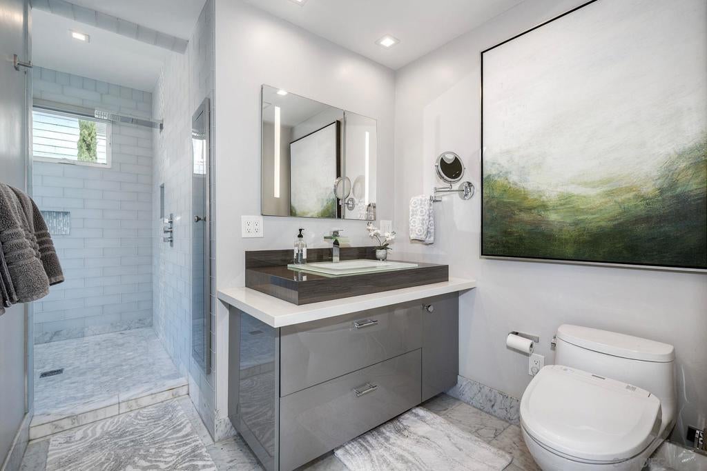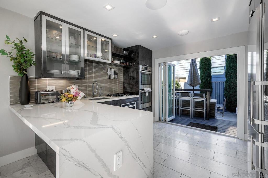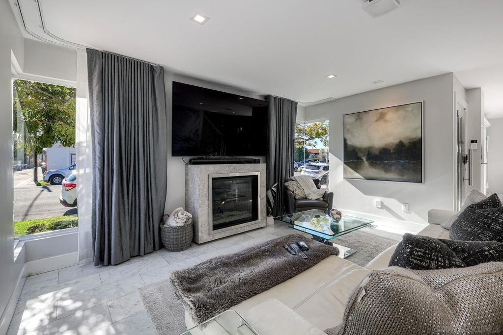 Exceptional contemporary home in a premier Village location, just three blocks from the beach and an easy walk to downtown Coronado. Built in 2017, this 3-bedroom, 2.5-bath residence offers nearly 1,500 sq ft plus approx. 540 sq ft of outdoor decks for seamless indoor–outdoor living. Offered furnished with high-end pieces, or furnishings may be removed. Home also has paid/included solar panels. A striking steel entry door opens to a thoughtfully designed interior. The chef’s kitchen features premium built-ins: dual wall ovens, microwave drawer, built-in cooktop, and Liebherr refrigerator. La Cantina doors connect to an outdoor bar and lounge. The private yard includes built-in BBQ, outdoor fridge, ice maker, cooler, fire pit, water feature, surf shower, ambient lighting, pet-friendly turf, and an in-ground spa. While the Sonos multi-zone system plays your favorite music! Light-filled living space features floor-to-ceiling corner windows with automated blinds, a contemporary fireplace. The primary suite offers 15-foot ceilings, dramatic windows, custom drapery, and two organized closets. Spa bath includes a wet room with rainfall/waterfall showers, sculptural tile, heated floors, and a freestanding soaking tub. A large rooftop deck adds a built-in TV, automated retractable awning, and privacy. Smart features include Savant automation, Lutron lighting, Yale smart lock, Rachio irrigation, soft-water system, wine fridge, and three outdoor fire features. Beach bikes/chairs/umbrellas included. Seller is open to selling with high end furniture/furnishings included. Smart home upgrades include Sonos multi-zone audio, automated window shades, Yale smart lock system, Savant automation, Lutron Caseta lighting, Rachio irrigation control, soft-water system, Bosch and Liebherr appliances, wine refrigerator, outdoor refrigerator, Solaire infrared grill, Sundance spa, Toto heated/bidet toilets, and three outdoor fire features. Full beach amenities (bikes, chairs, umbrellas) are included. A rare combination of design, technology, craftsmanship, and location, this home delivers a modern, turnkey coastal lifestyle in one of Coronado’s most desirable neighborhoods.