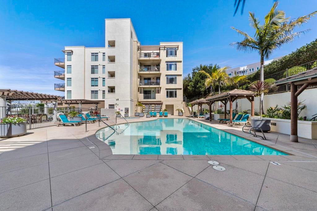 Investor looking to retire and sell! Beachfront beauty in premier resort-style community. Breathtaking ocean views from your living room, kitchen, and private balcony where you can watch sailboats drift by and palm trees sway in the ocean breeze. Enjoy relaxing, entertaining and sunsets on the large balcony which also includes a storage closet. This light-filled, open-concept, corner unit home boasts expansive picture windows, seamlessly blending indoor and outdoor living. The chefs dream kitchen is equipped with brand-new stainless-steel appliances, sleek granite countertops, and a layout perfect for entertaining. The oversized primary suite overlooks the resort-style pool with access to the private balcony & a generously sized walk-in closet. The primary bathroom offers a walk-in shower, a spacious vanity, The large second bedroom is on the opposite side of the unit for added privacy with a full tub/shower bathroom conveniently located nearby. A stacked washer and dryer in the hallway provide ultimate convenience. Two assigned parking spaces in a secure garage includes EV Charging plus a locked storage unit for your beach toys. An elevator ensures easy access, and the unit is designed for accessibility, featuring 32" wide doors. Enjoy resort-style amenities, including a heated pool & spa, BBQ area, fire pits, and a state-of-the-art fitness center. The clubhouse offers a kitchen, pool table, and TV perfect for gatherings. Outdoor enthusiasts will love the 12-mile San Luis Rey River bike trail, ideal for biking, jogging, and scenery.