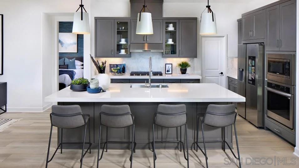 This home is ready for your move-in and already has flooring and backsplashes installed. It is a two-story home for ages 55 and better that features plenty of shared and private spaces. Near the entry is a bedroom suite with a private bathroom, as well as a powder room accessible to both guests and residents. A den provides improved versatility on the first level, just before the open layout shared between the Great Room, kitchen and dining room that opens to a covered California Room. The owner's suite is also on the first level with a large bathroom and walk-in closet. The second level features a large bonus room and additional bedroom and bathroom. Junipers is a gated master-planned community for active adults aged 55 and better that combines resort-style living with a top-notch location in San Diego, CA Woodlands is a collection of new single-family homes now selling in Junipers' gated master-planned community in San Diego, CA for active adults aged 55 and better. This collection offers some of the largest home designs available at the masterplan including one and two-story floorplans, all featuring first-floor owner’s suites. Residents enjoy an onsite recreation area with a swimming pool, spa, fitness center, pickleball court, parks and more. The community is conveniently located near local shopping options, such as Costco and Starbucks, and I-15 for easy commutes. Photos or renderings may be of the Model Home and not the actual home.
