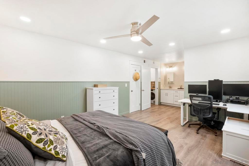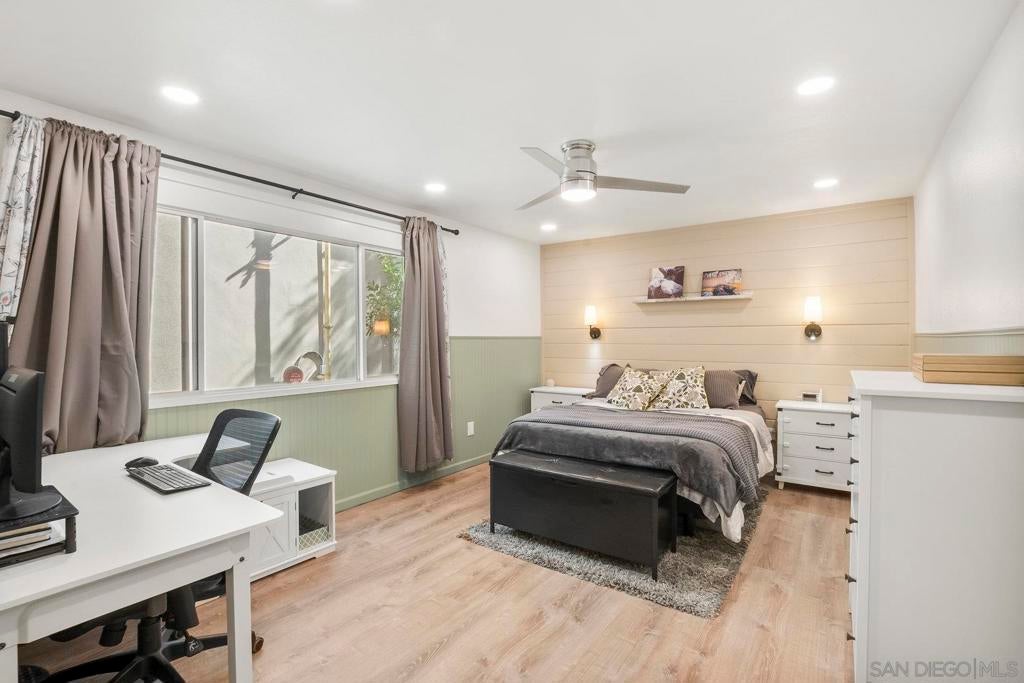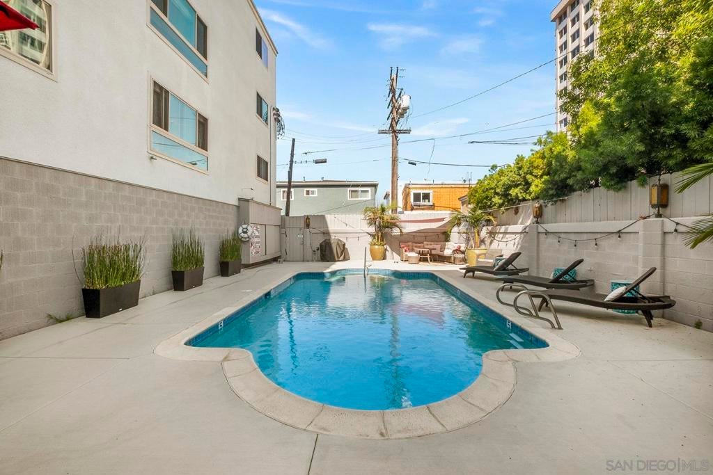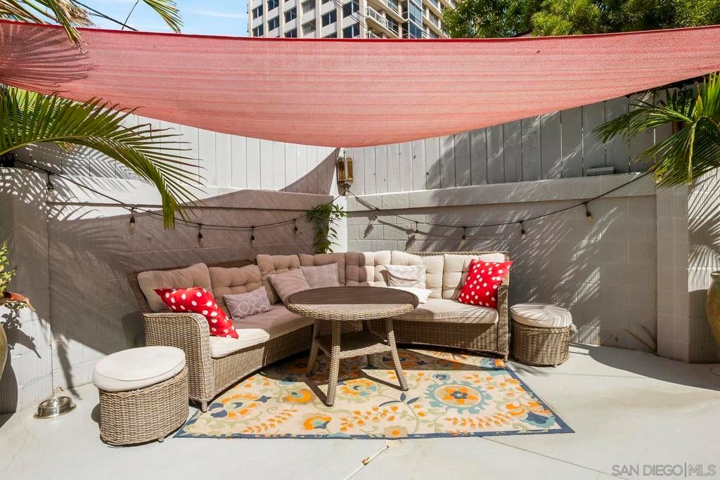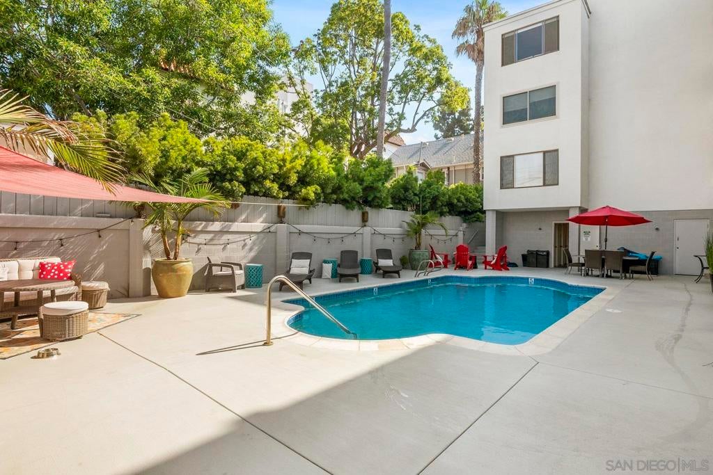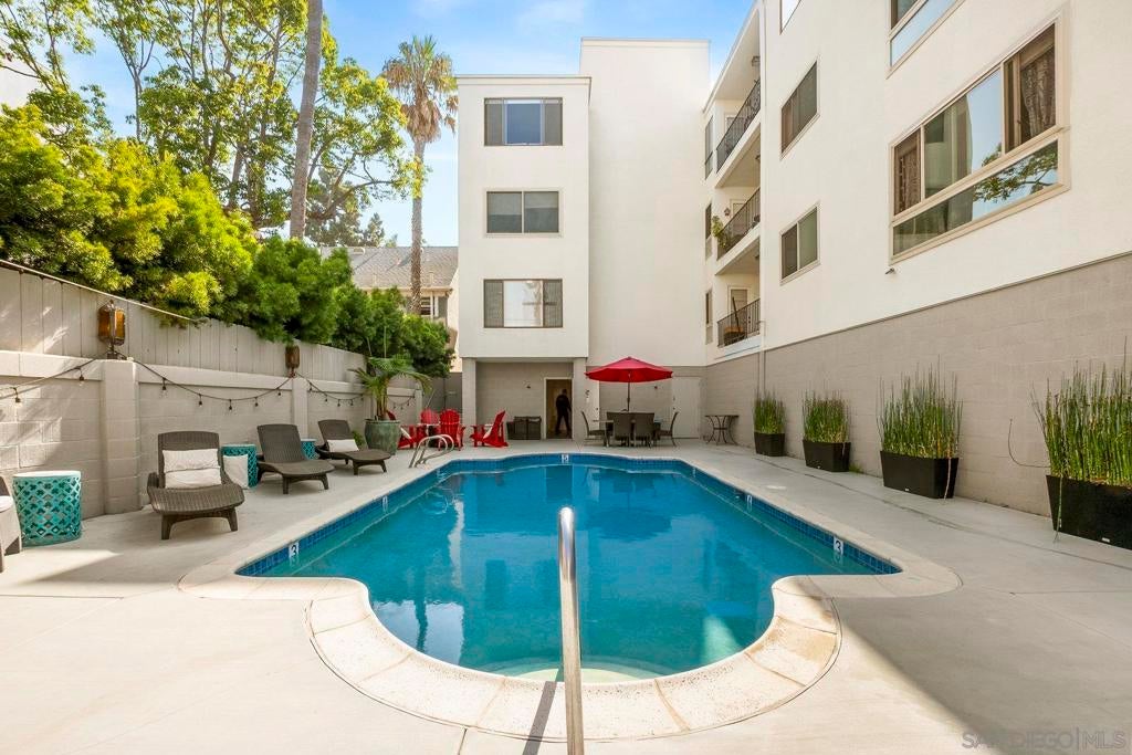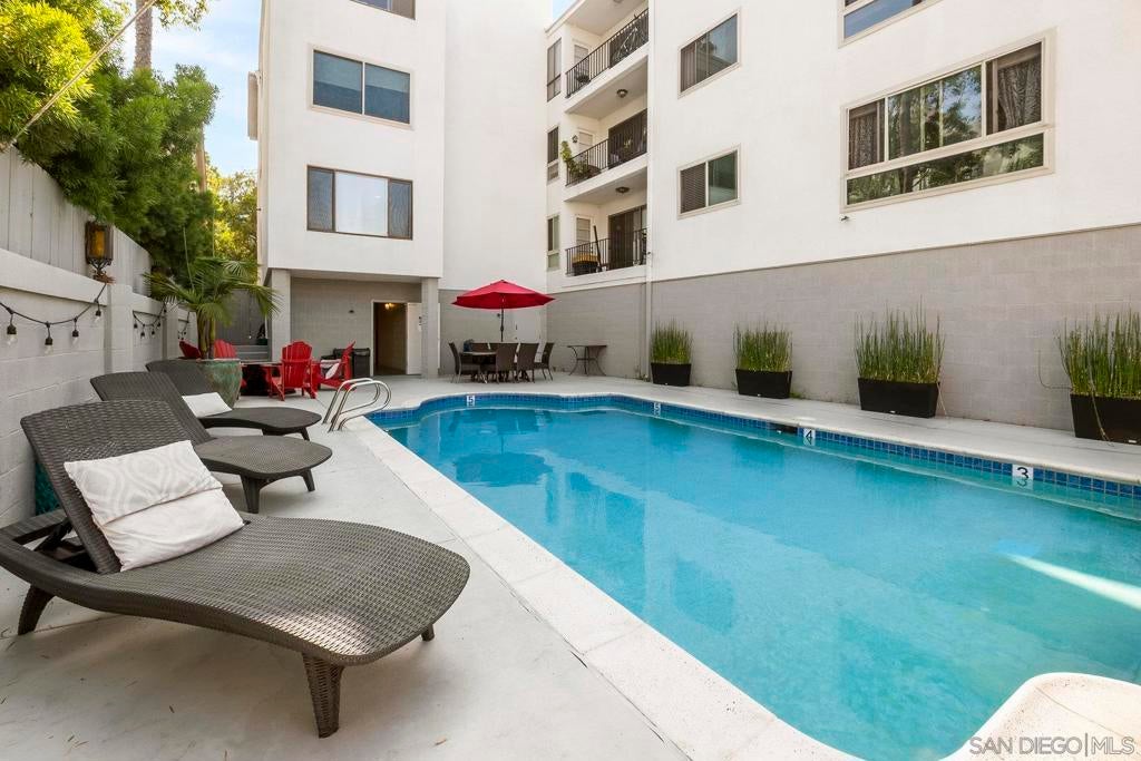 Beautifully upgraded Hillcrest/Bankers Hill condo—style meets convenience! Over $55,000 in upgrades bring comfort and character to this inviting home. Custom built-ins add style, storage, and cozy seating, while wainscoting, solid wood Craftsman-style doors, and custom door frames elevate the design throughout. The home features quartz counters, recessed lighting with dimmers, and smart switches for modern ease. The primary bedroom is enhanced by a custom shiplap feature wall with integrated sconces, and USB charging outlets. The living space has custom built in wall unit and built-in window seat with storage. Enjoy peace and privacy with soundproofed adjoining walls and ceilings, plus quiet ceiling fans. The updated walk-in tile shower adds spa-like touches, and laundry is conveniently inside the home. This condo is an end unit with windows on three sides. From the building's shared balcony on the 4th floor you can see fireworks from the Padres and Sea World. The building itself offers even more: pool, parking, elevator, secure lobby, exterior maintenance, storage bay in garage, and low-cost HOA that includes water. All of this is just steps from Balboa Park, the San Diego Zoo, Seven Bridges Trail, restaurants, cafes, shops, and more. Experience the charm —come see for yourself!