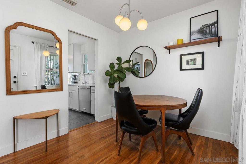 Less than one mile to the Pacific Ocean and at the base of Fire Mountain in Oceanside. This cute 3 bedroom, 1 1/2 bathroom coastal bungalow offers you beautiful Sunsets year around. This turn key, highly upgraded kitchen, large west facing backyard, beautiful original hardwood flooring, newer appliances, exterior paint, central heat, water heater, electrical, roof, 200amp electrical panel and many more. This house is a true Gem for your coastal living lifestyle, with a Large Lot that leaves plenty of room to grow, in a very private peaceful neighborhood. Go on a nice 1 mile walk to the beach, e-bike or golf cart to the local establishment, and highly rated restaurants, coffee shops, micro breweries, shops, yoga. This home is inviting and bright from the minute you walk in. This is a property that is like no other in the neighborhood with plenty of upgrades and a drive-through garage to your large workshop in the rear yard. Come take a peak for yourself, and see what Coastal South Oceanside is all about.