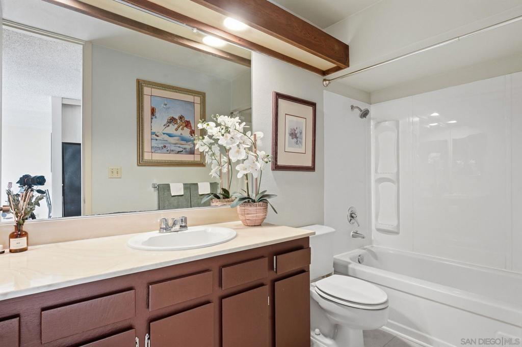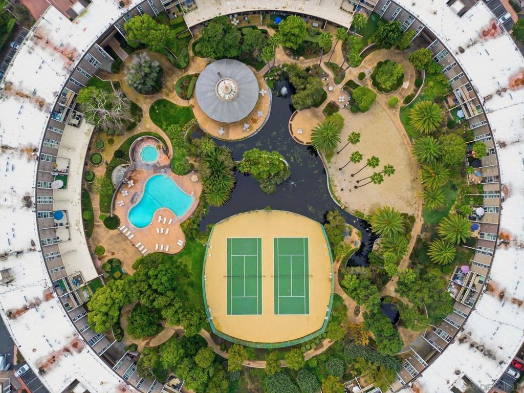 Welcome to Pacific Isle, a secure, resort-like community nestled in the vibrant Point Loma area. This highly sought-after top-floor unit offers an ideal sense of privacy with no neighbors above and a desirable outdoor-facing layout that floods the space with natural light while showcasing views of the beautiful Point Loma Peninsula. From the moment you step inside, the home feels open, bright, and welcoming. The unit has been meticulously updated, featuring a completely renovated kitchen and bathroom with modern finishes, fresh paint throughout, and reconditioned floor-to-ceiling windows. It’s truly a move-in-ready home that has been thoughtfully maintained and even includes a storage unit! Pacific Isle offers a stunning array of amenities that truly elevate the living experience. Imagine lounging by a resort-style pool, gathering with friends in a spacious community room outfitted with a pool table and ping pong table, or enjoying a match on one of the two full tennis courts or the beach volleyball court. Fitness enthusiasts will appreciate the dedicated men's and women's fitness centers, complemented by a relaxing steam room and sauna. The courtyard is a peaceful retreat, featuring a gentle stream that meanders through the lush landscaping and tranquil walking paths, creating an atmosphere reminiscent of a private tropical paradise. Convenience is key, as Pacific Isle is strategically located just moments away from some of San Diego's finest beaches, the bay, Liberty Station, a variety of restaurants, shopping, and the airport. The perfect coastal lifestyle!