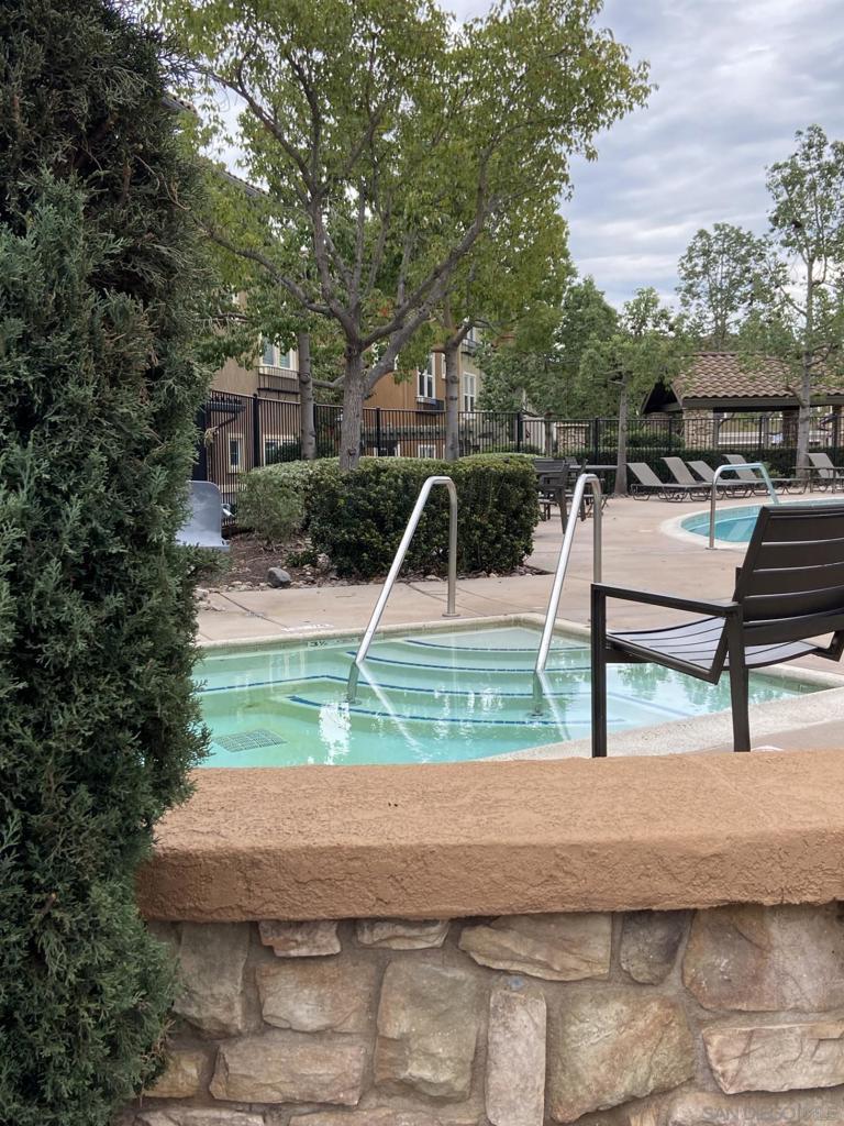 Treviso! Super west end Santee Condominium Complex! VA Approved! Built in 2007 with lovely common areas. Pool and Spa, many other amenities ready for all year-round fun. Upper unit with private stairs to the detached private 1-car garage. Great floorplan with covered front porch, interior entryway, to a nice living room, dining room, kitchen open floorplan. Large Primary Suite with walk-in closet and large ensuite. Central A/C, newer gas water heater, FAG heating, with gas stove/oven for cooking. Quartz Countertops and nice open kitchen with pantry. Close to shopping, award-winning school districts (West Hills High School), and transportation. This truly is a wonderful place to start your home-ownership journey!