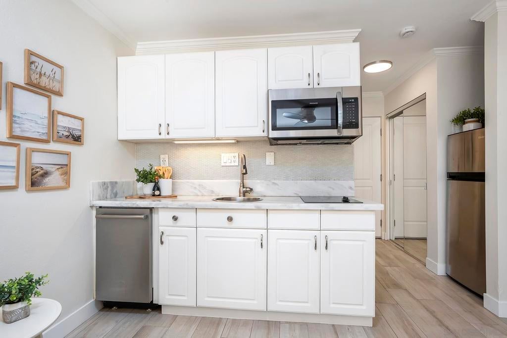Welcome to 1021 Scott Street, Unit 137 — where compact luxury meets Point Loma’s most scenic setting. This bright, thoughtfully designed, 288 sq ft studio offers style, efficiency, and stunning views, perfect for full-time living, a weekend getaway, or an investment opportunity. Perched above the marina, the home features a sliding glass door leading to a private balcony with views of the Point Loma hills, the marina, and the community pool. A space-saving Murphy bed adds flexibility and extra storage, while the kitchen shines with stone countertops and ample white cabinetry. The well-appointed bathroom includes a full size tub with beautiful finishes. Just steps from the scenic Bessemer Path and La Playa Bayfront Beach, the community offers premium amenities such a pool, fitness center, billiards room, and residents’ lounge. Whether you’re sipping your morning coffee on the balcony or strolling the bay, this upgraded studio delivers big on lifestyle in a premier location.