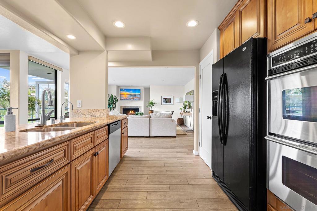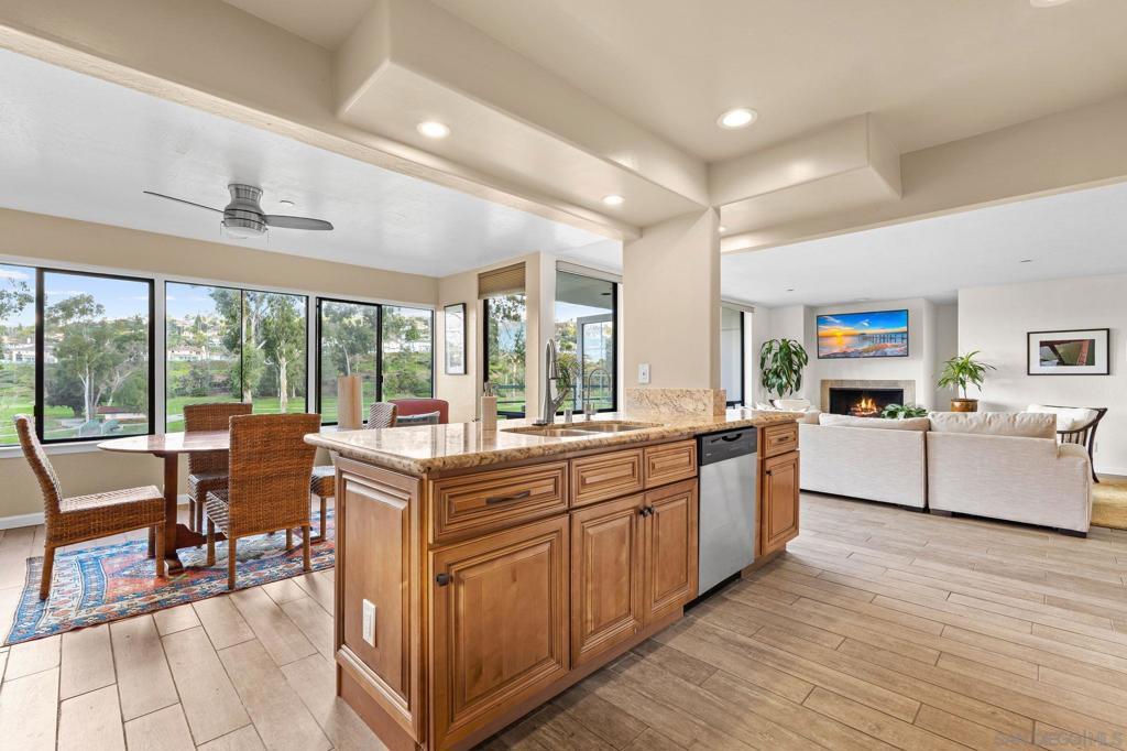 Experience elevated La Costa living in this beautifully refreshed single-level home, where style, comfort, and convenience come together in a serene resort-like setting. Designed with an open floor plan, the residence is ideal for both relaxed daily living and easy entertaining. Sunlight fills the spacious living and dining areas, highlighted by a warm gas fireplace and seamless access to to a private balcony—ideal for enjoying coastal breezes, morning coffee, or evening relaxation. The thoughtfully updated kitchen offers quality appliances, generous cabinetry, and a nearby dedicated laundry room for added convenience. Plentiful storage can be found throughout the home, complemented by additional private storage located in the garage. The property includes two assigned parking spaces within a secure gated garage and features a fully upgraded electrical panel. Residents enjoy access to exceptional community amenities, including a resort-style pool and spa, as well as a remarkable rooftop deck with sweeping views of the Omni La Costa Resort golf course—an impressive and unique gathering space. A nearby walking path leads directly to the golf course, with a popular snack shack and bar just steps away, perfect for casual afternoons. Ideally situated just minutes from Carlsbad’s beaches, I-5 access, and the Beacon La Costa shopping and dining destination, this home is surrounded by wellness studios, cafés, and everyday essentials.