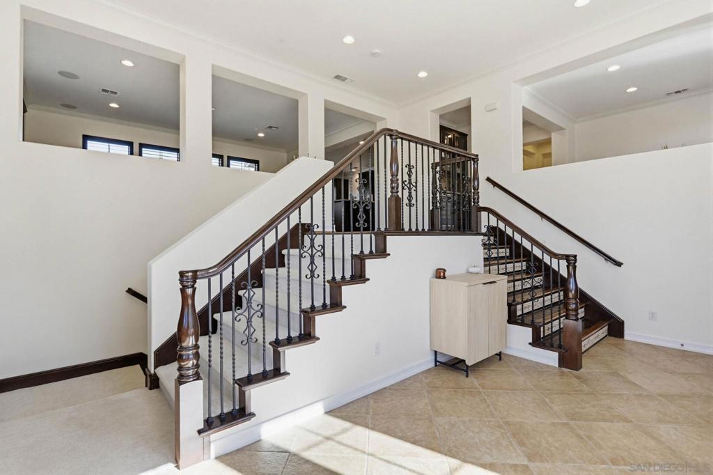 Experience breathtaking ocean and mountain views from this stunning, private residence in the exclusive gated Azure community of San Elijo Hills! Perfectly positioned on a quiet, single-side street with no neighbors behind, the home backs directly to scenic hiking trails and offers rare privacy and panoramic vistas. This spacious 3,722 sq ft split-level home features 4 bedrooms plus an office (optional 5th bedroom), 3.5 bathrooms, and a large game/movie room ideal as a second family or theater room. The main living level is the heart of the home, showcasing an open-concept gourmet kitchen with stainless steel appliances and granite countertops, bright dining and living areas, and a luxurious primary suite with its own view deck. A second family room on the lower level adds flexibility for multi-generational living or entertaining. Outdoor living truly shines with expansive view decks, a sparkling pool, generous entertaining areas, and a large grassy side yard—an exceptional find for a pool home. Located in the award-winning San Elijo Hills community, enjoy top-rated schools (San Elijo Elementary & Middle, San Marcos High), parks, ball fields, playgrounds, dog park, community center, shops, dining, and over 1,000 acres of open space with 30+ miles of trails—all just a short walk away. This is Southern California living at its finest! Experience breathtaking ocean and mountain views from this stunning, private residence in the exclusive gated Azure community of San Elijo Hills! Perfectly positioned on a quiet, single-side street with no neighbors behind, the home backs directly to scenic hiking trails and offers rare privacy and panoramic vistas. This spacious 3,722 sq ft split-level home features 4 bedrooms plus an office (optional 5th bedroom), 3.5 bathrooms, and a large game/movie room ideal as a second family or theater room. The main living level is the heart of the home, showcasing an open-concept gourmet kitchen with stainless steel appliances and granite countertops, bright dining and living areas, and a luxurious primary suite with its own view deck. A second family room on the lower level adds flexibility for multi-generational living or entertaining. Outdoor living truly shines with expansive view decks, a sparkling pool, generous entertaining areas, and a large grassy side yard—an exceptional find for a pool home. Located in the award-winning San Elijo Hills community, enjoy top-rated schools (San Elijo Elementary & Middle, San Marcos High), parks, ball fields, playgrounds, dog park, community center, shops, dining, and over 1,000 acres of open space with 30+ miles of trails—all just a short walk away. This is Southern California living at its finest!