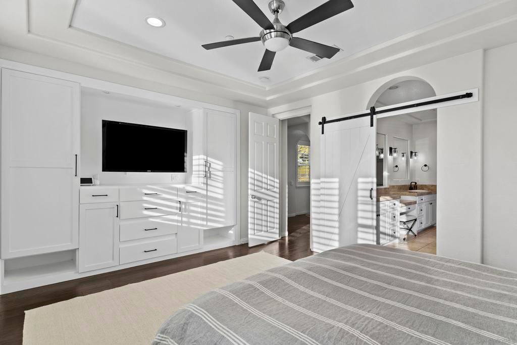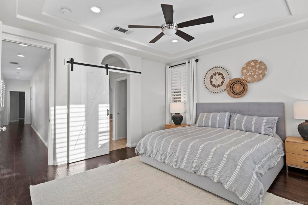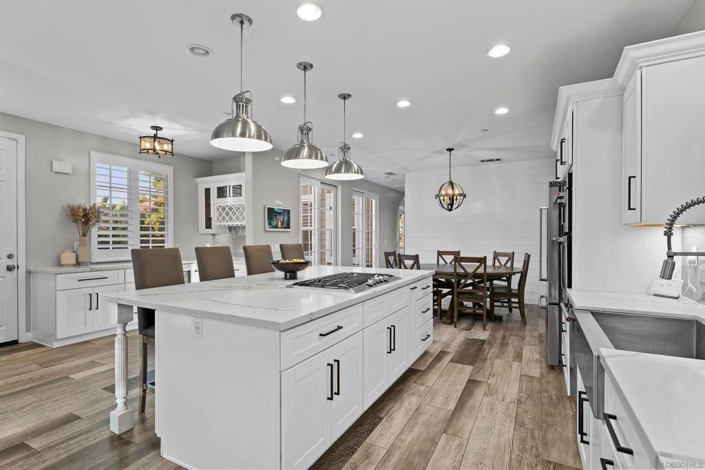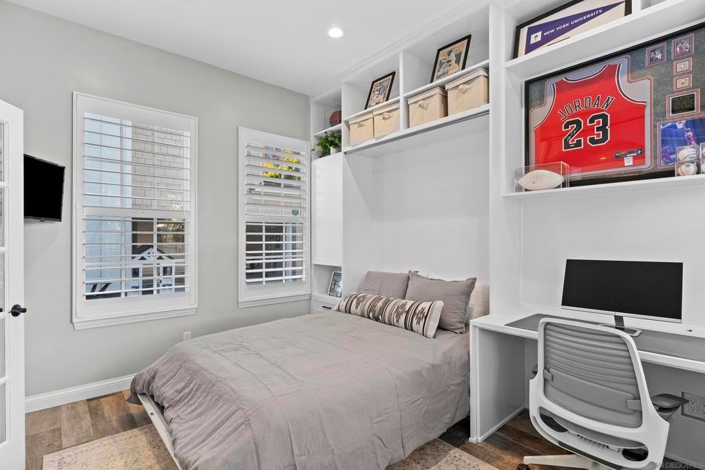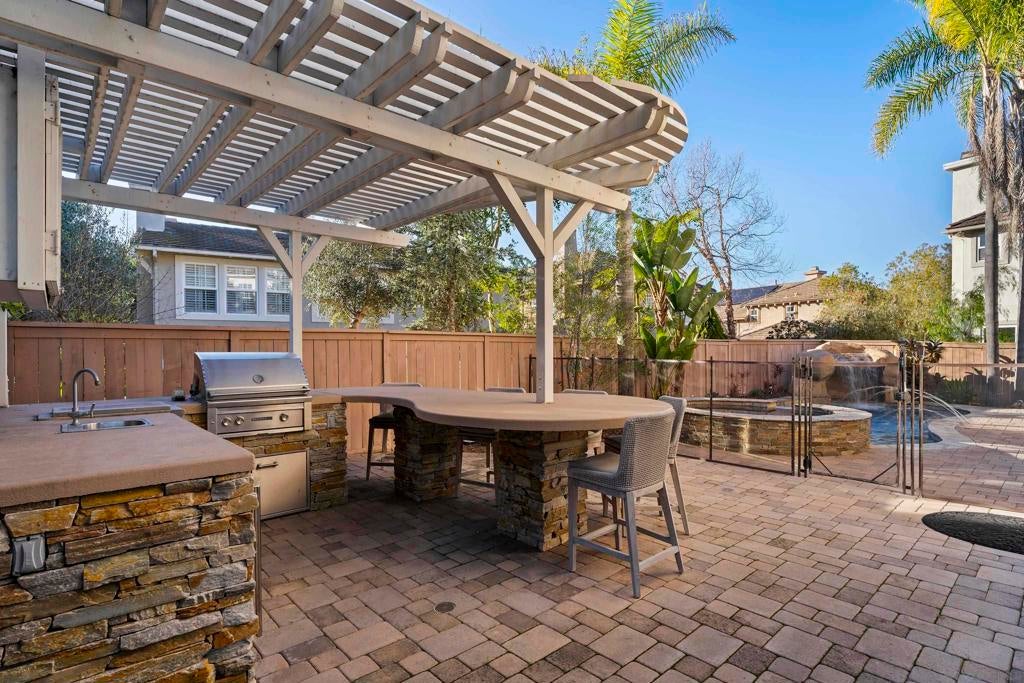Welcome to your Encinitas Ranch 4+1 Bedroom Dream Home on the quiet Samuel Court cul-de-sac. Home highlights include: Pool and Spa w/ water features, outdoor BBQ kitchen w/ seating & TV media cabinet, large semi-covered custom-paver driveway entry to garage, owned solar, 2nd floor laundry room, & community green space walking trail at south side of home. Current bedroom configuration has 3 bedrooms upstairs including primary, with 2 bonus rooms downstairs (one with Calif. Closets murphy bed & desk). Flexible floorplan gives easy option for home to be a 5 bedroom -or- 4bed+office, etc. Encinitas Ranch Community is conveniently located with all of Encinitas nearby, Las Verdes Park to the west, and public hiking trails to the south and east.